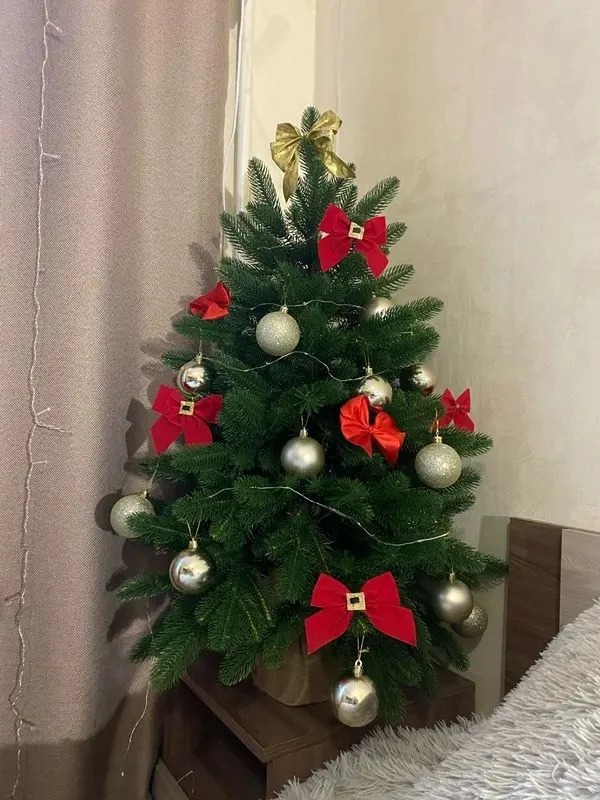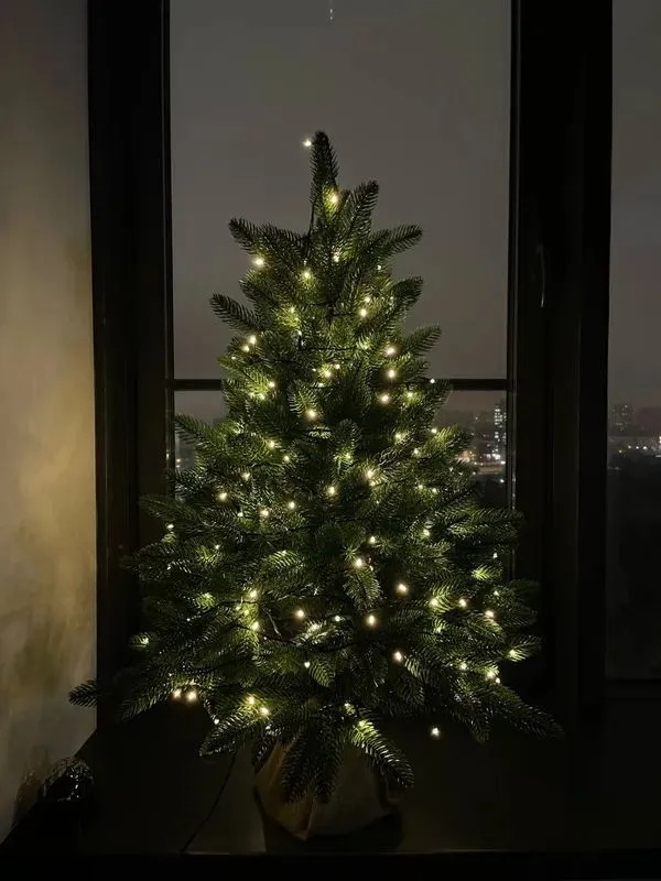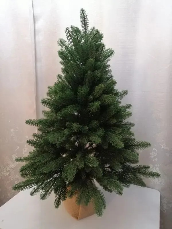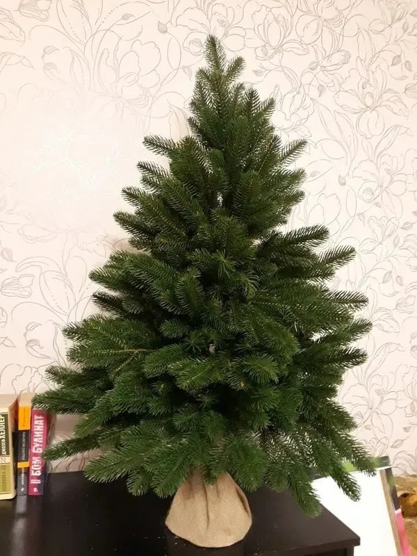 Елка имеет высоту 90 см и диаметр основания 76 см, что делает ее достаточно заметной, но при этом не занимает много места. Конструкция ствольная, что обеспечивает устойчивость и надежность.