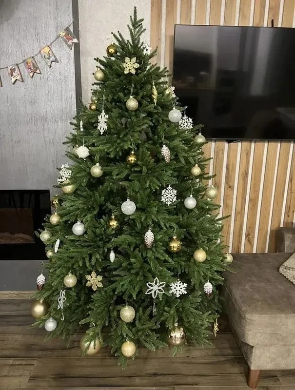 Ель Инфинити имеет ствольную конструкцию, что придает ей еще больше естественности и реалистичности. В ней 914 ветвей, которые крепятся на шарнирах, что позволяет легко менять положение веток и придавать им нужную форму.