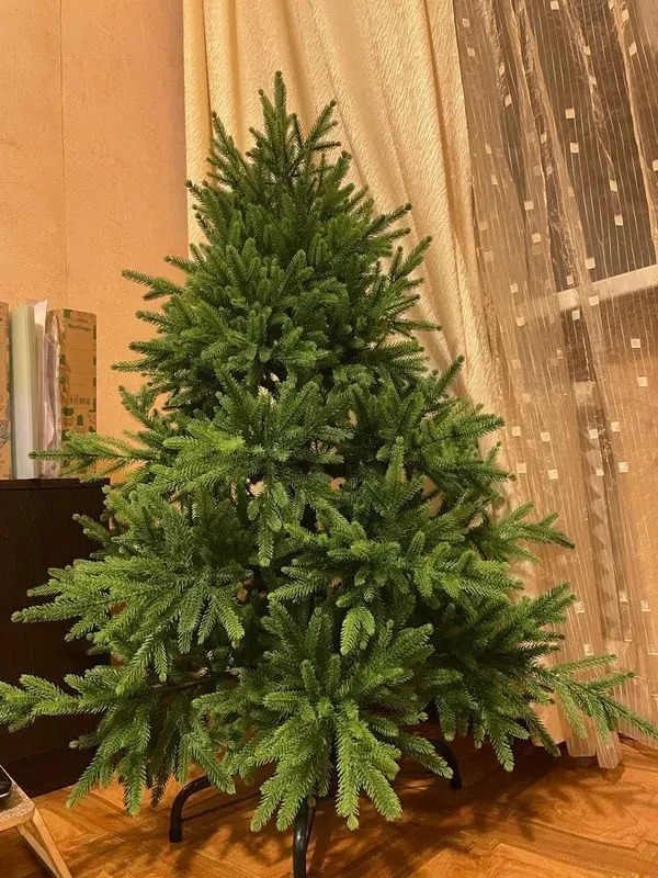 Материал хвои - литая ПЭ, что гарантирует долгий срок службы и сохранение внешнего вида елки. Материал подставки - металл, что обеспечивает устойчивость и надежность конструкции.