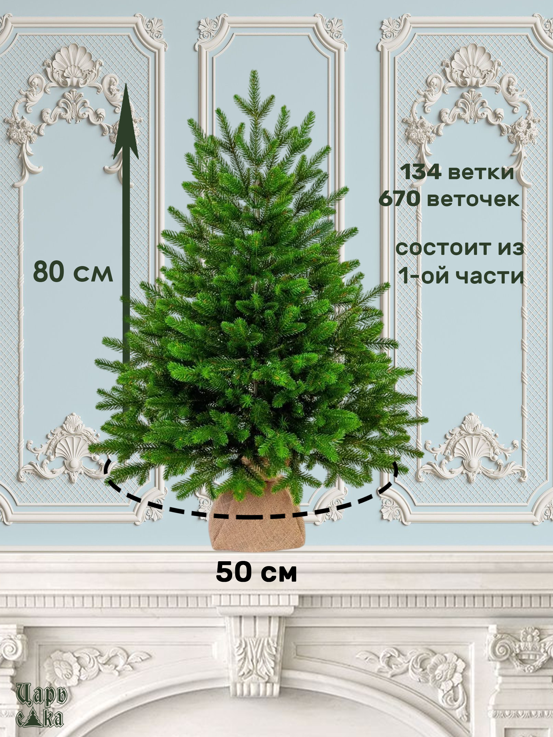 Высота этой искусственной елки составляет 80 см, что делает ее компактной и удобной для размещения в любом уголке вашего дома. Диаметр основания составляет 50 см, что позволяет разместить ее даже в небольших помещениях.