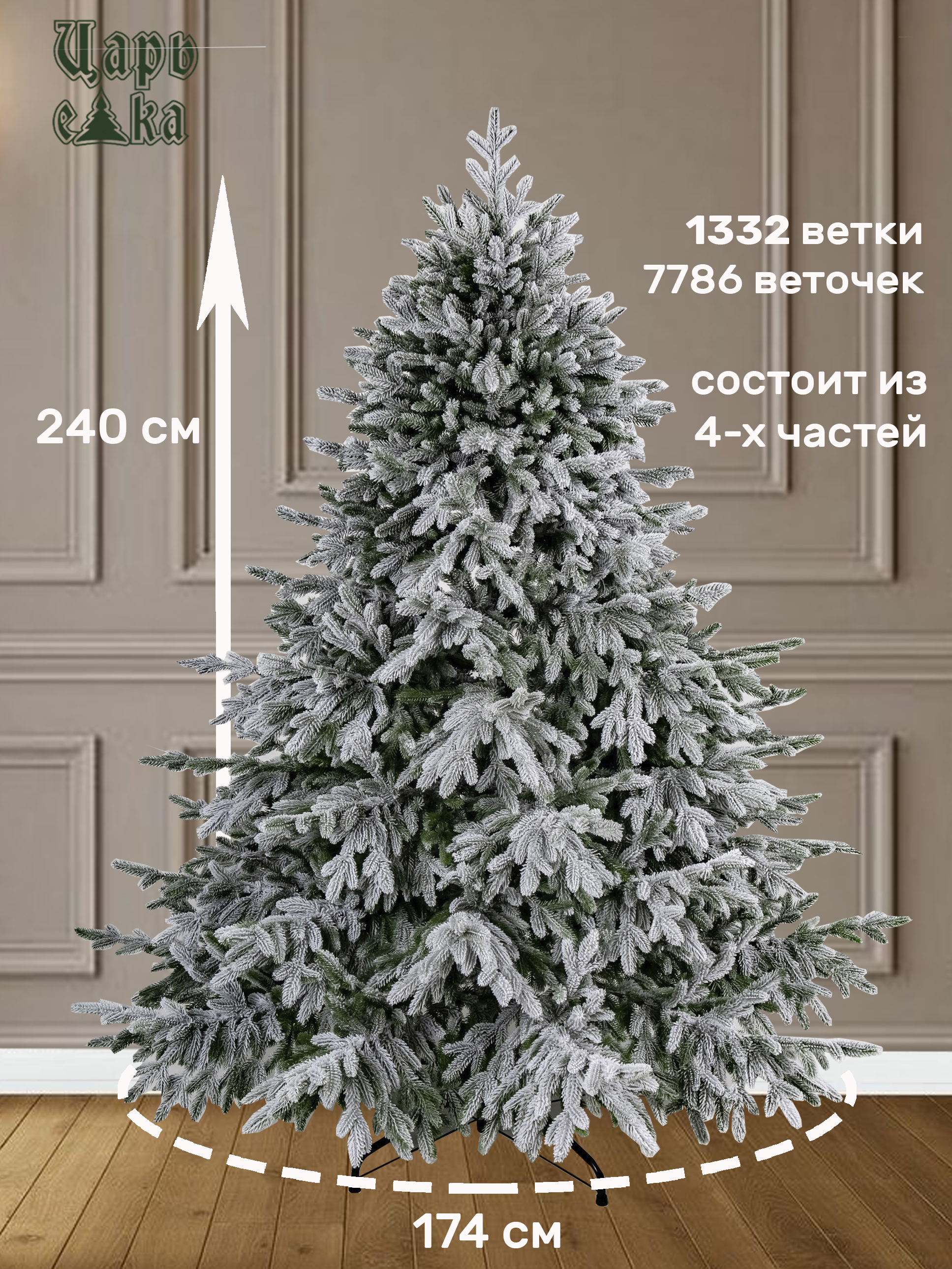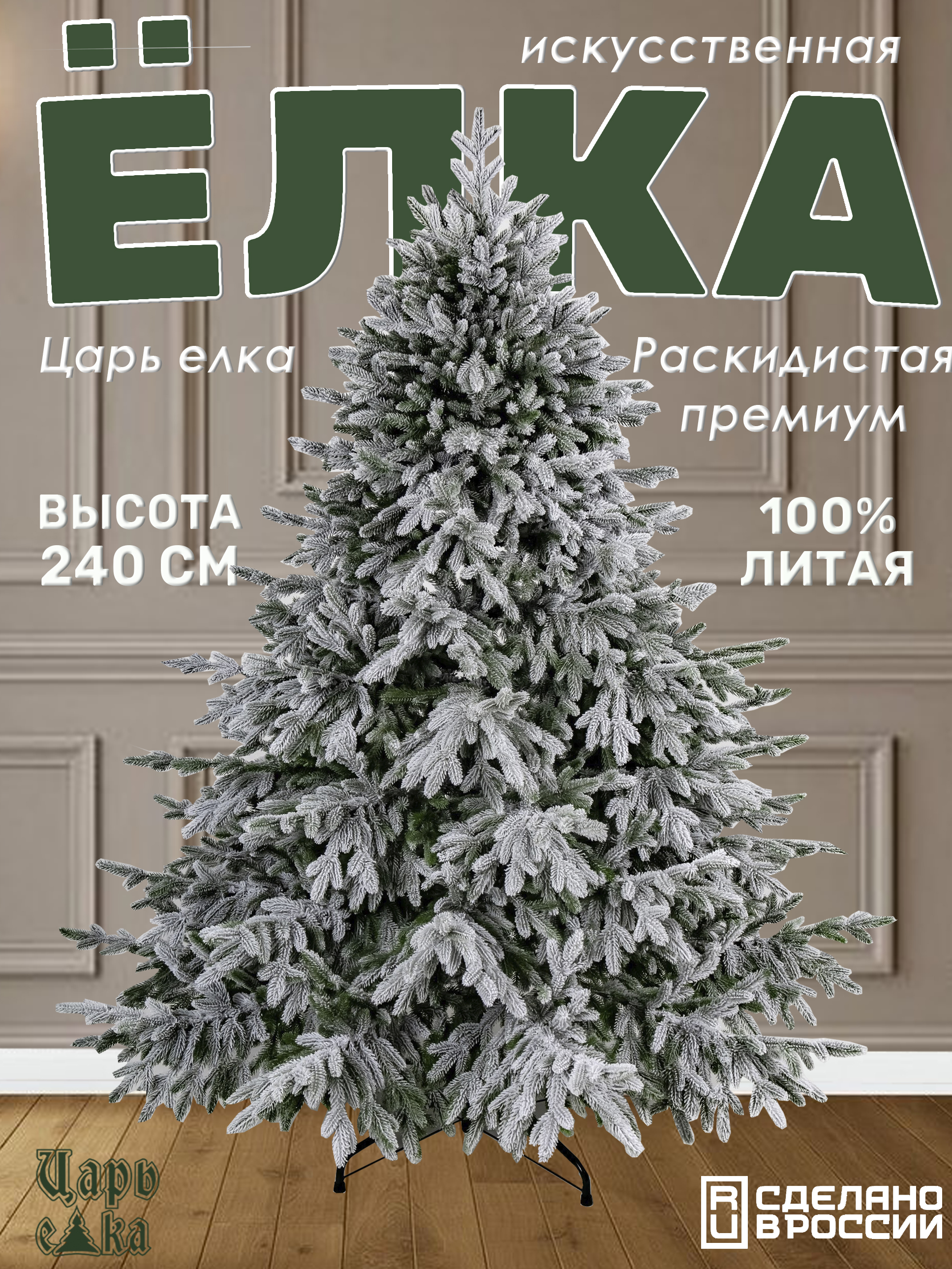 Эта роскошная искусственная ель высотой 240 см от российского производителя "Царь Елка" станет великолепным украшением вашего дома или офиса в период новогодних праздников. Благодаря внушительному диаметру основания в 174 см, она создаст ощущение настоящего лесного дерева прямо у вас в комнате.Конструкция ствольного типа обеспечивает легкость сборки и разборки, а шарнирное крепление веток значительно упрощает процесс установки украшений. 1332 ветви, выполненные из 100% РЕ, придают елке пышный и реалистичный вид. Эффект заснеженности добавляет ей очарования и сказочности, создавая атмосферу зимней волшебной сказки.Прочная металлическая крестовина диаметром 65 см надежно удерживает елку в вертикальном положении, обеспечивая ее устойчивость. Елка идеально подходит для установки в помещении, будь то просторная гостиная или уютная комната.Эта искусственная ель не только красива, но и практична. Она прослужит вам много лет, не теряя своего первоначального вида. Вам не придется беспокоиться о ежегодной покупке живой елки и последующей уборке осыпавшихся иголок. Просто соберите ее один раз и наслаждайтесь новогодней атмосферой долгие годы.