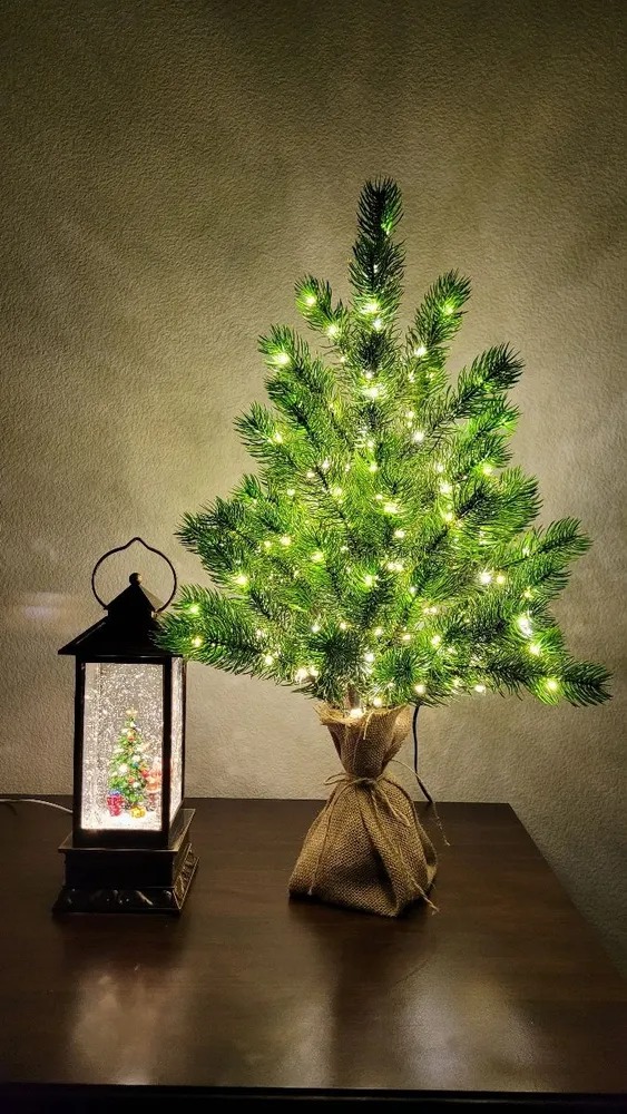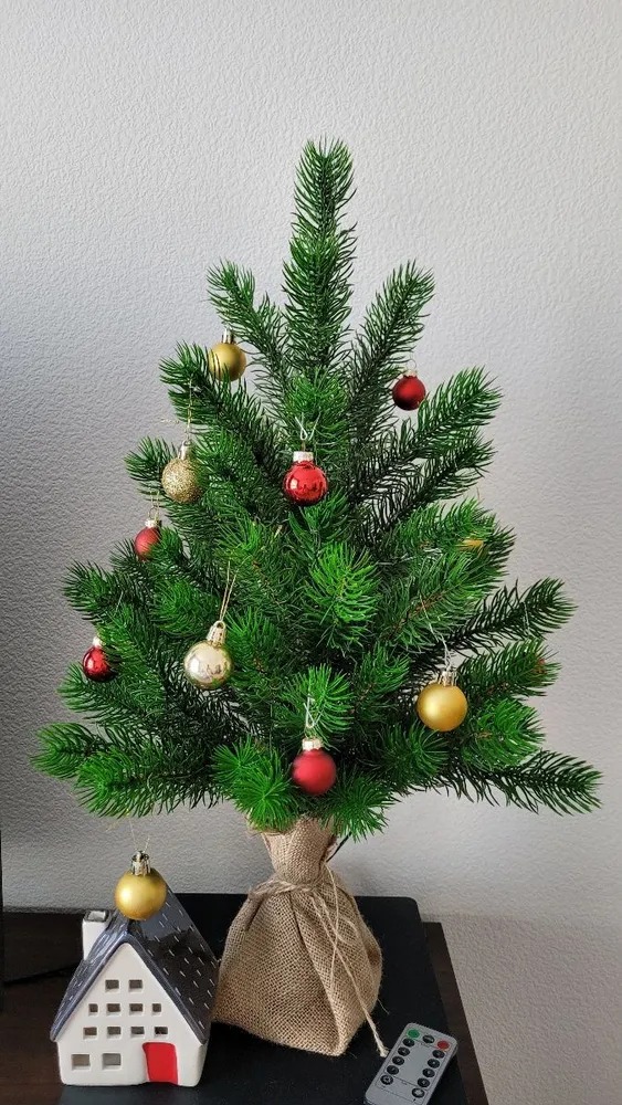 Подставка выполнена из мешковины, что добавляет дереву уютности и тепла.