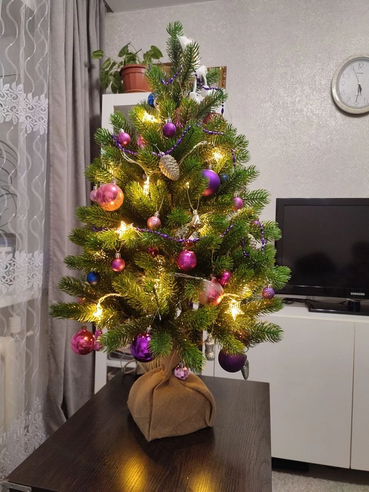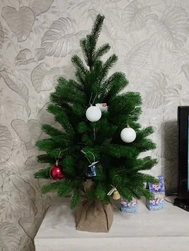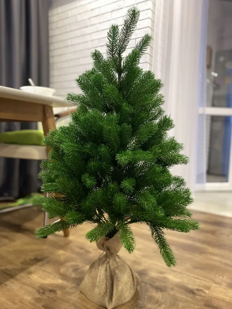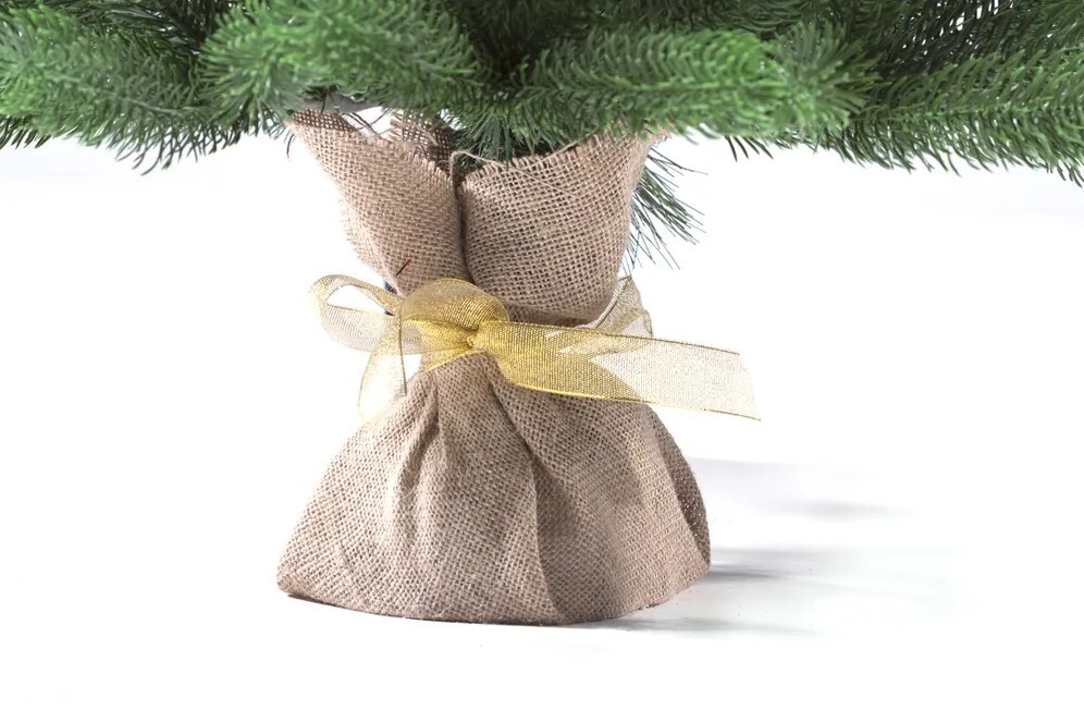Подставка выполнена из мешковины, что придает елке натуральный вид. Тип подставки - мешочек, что обеспечивает устойчивость и безопасность при использовании.