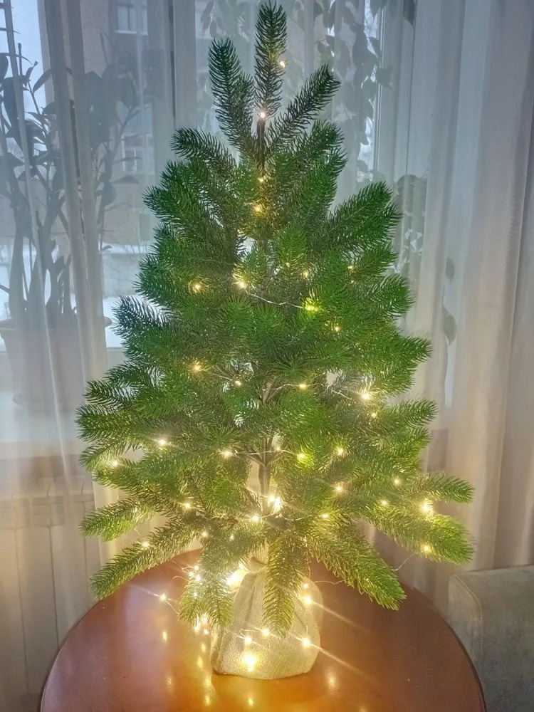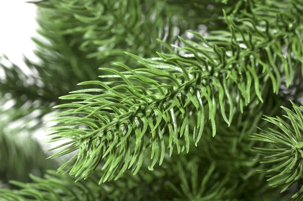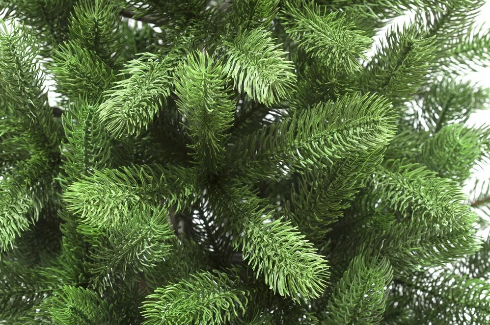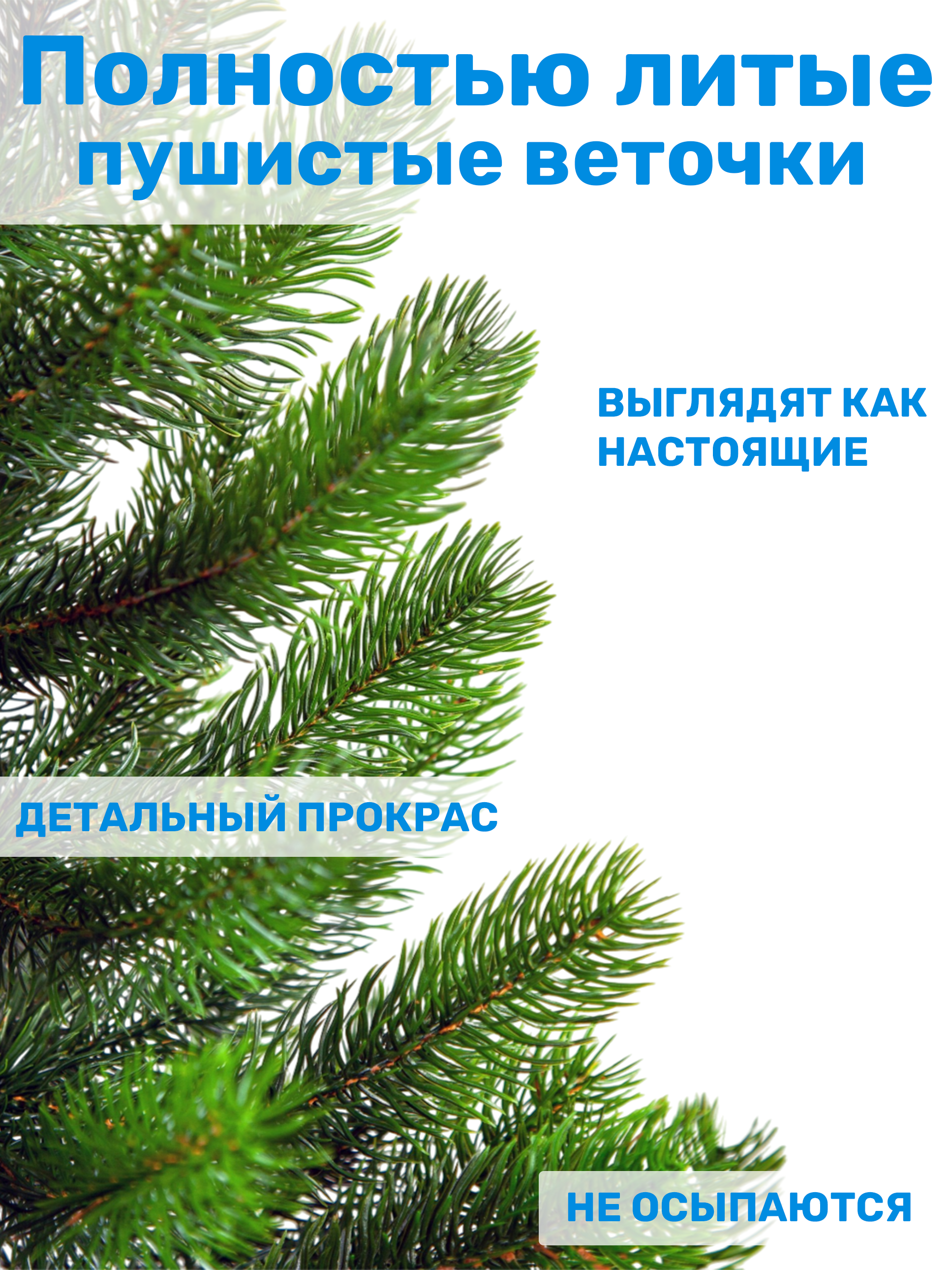 Материал хвои - 100% литая ПЭ, что придает ветвям реалистичный вид и обеспечивает долгий срок службы. Цвет хвои - зеленый, что создает атмосферу праздника и уюта.
