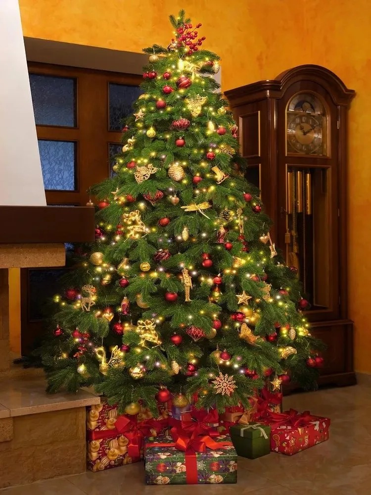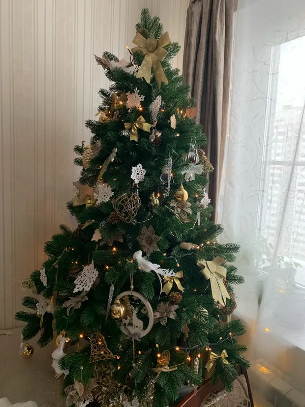 Количество ветвей составляет 363 штуки, что придает елке пышный и естественный вид. Крепление веток осуществляется с помощью отгибающихся шарниров, что обеспечивает удобство при сборке и разборке елки.