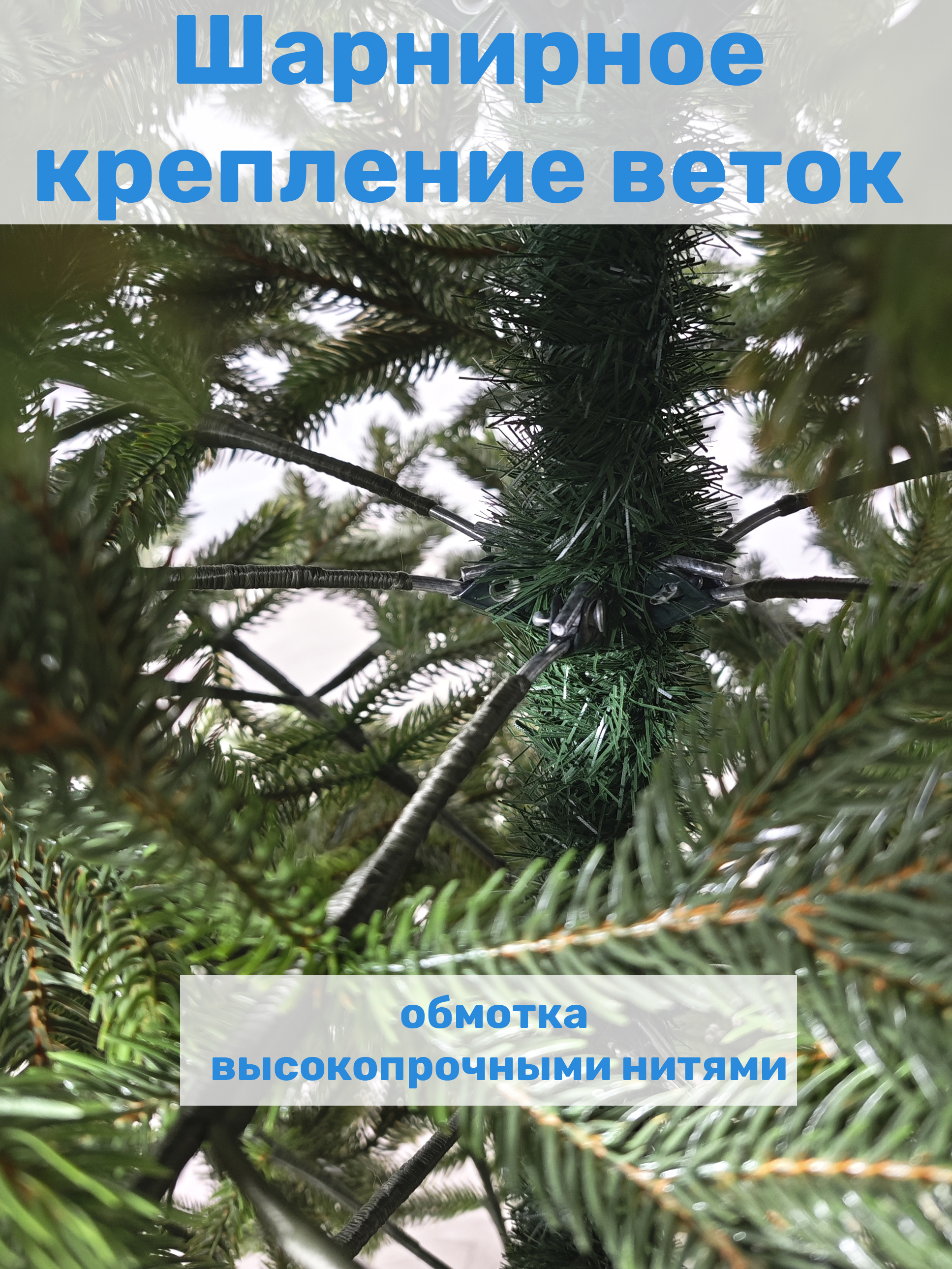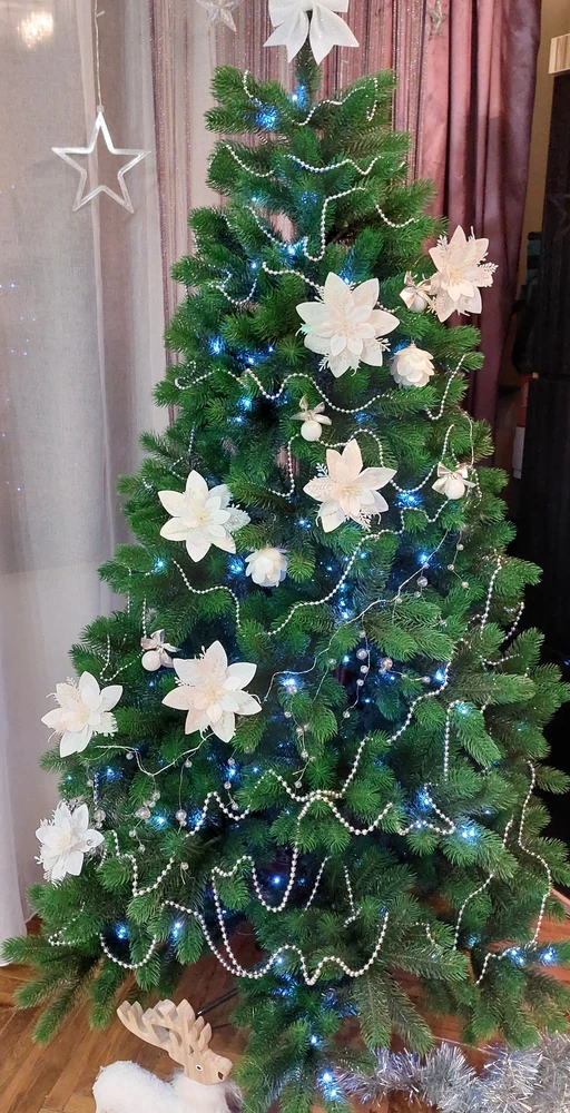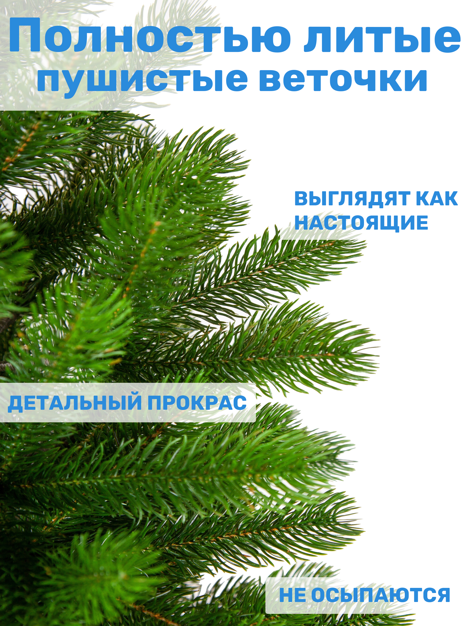 Елка выполнена из качественного материала - литой ПЭ, что обеспечивает ей пышные ветви и длинные упругие иголки, выглядящие точь-в-точь как настоящие.