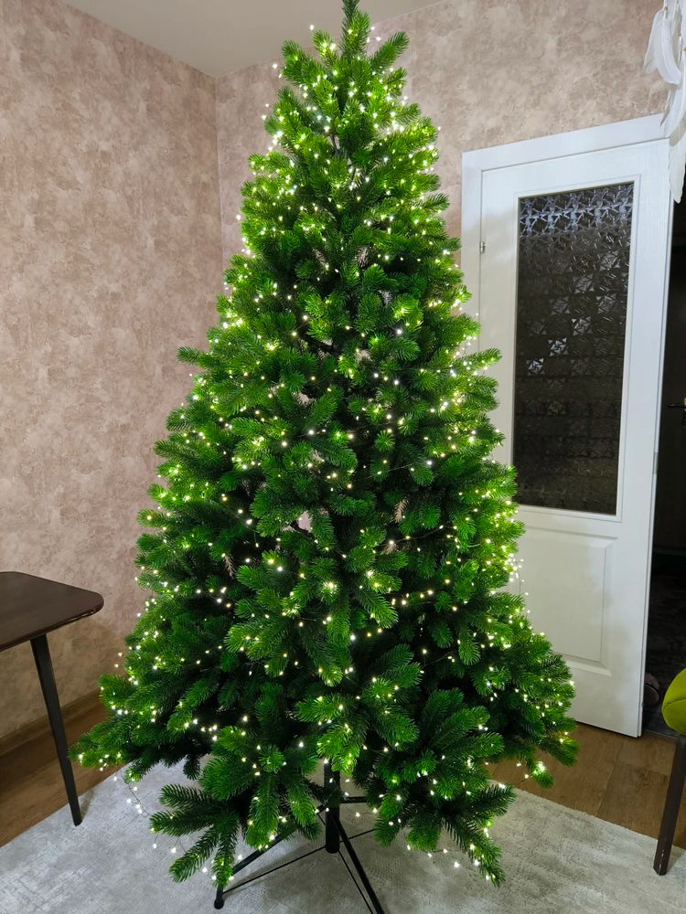 Елка имеет высоту 210 см и состоит из трех ярусов, что придает ей пышный и объемный вид. В общей сложности, ель имеет 1393 ветви, что обеспечивает ей густоту и пышность.