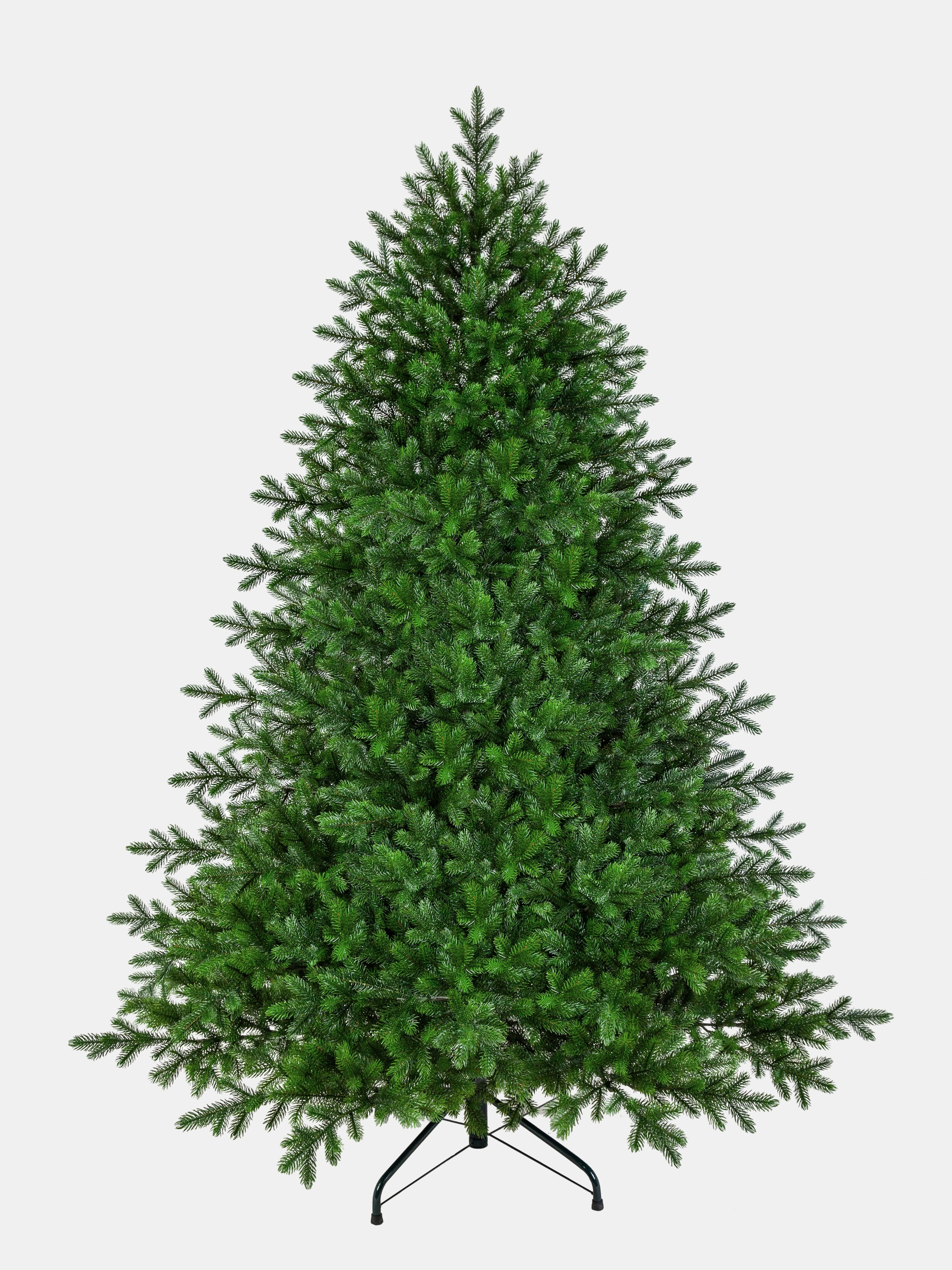 Елка имеет высоту 210 см и состоит из трех ярусов, что придает ей пышный и объемный вид. Диаметр основания составляет 158 см, что позволяет разместить елку в просторных помещениях.