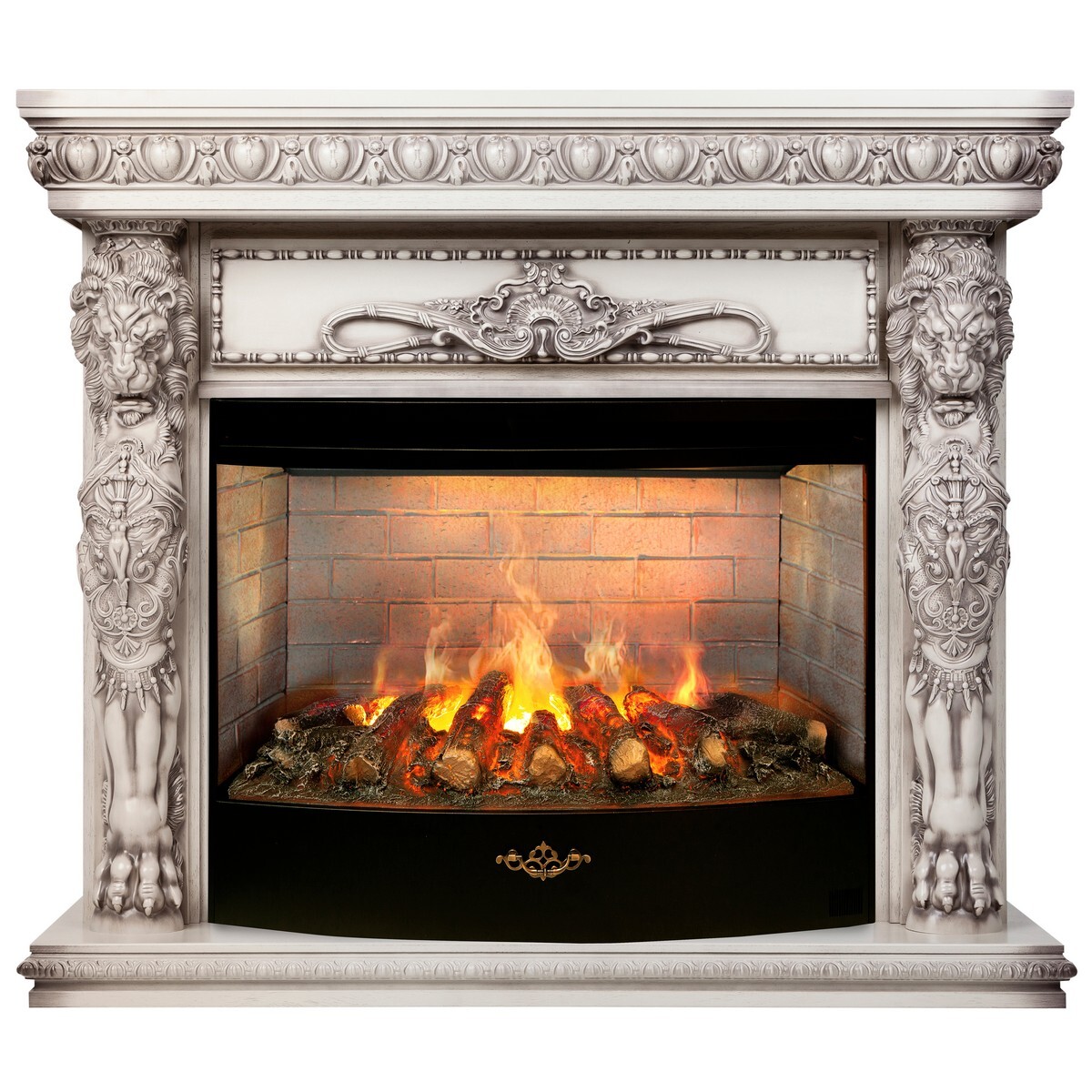 Обрамление из шпонированного МДФ в стиле барокко в цвете "беленый дуб" WT-655 с очагом Firestar 33 3D