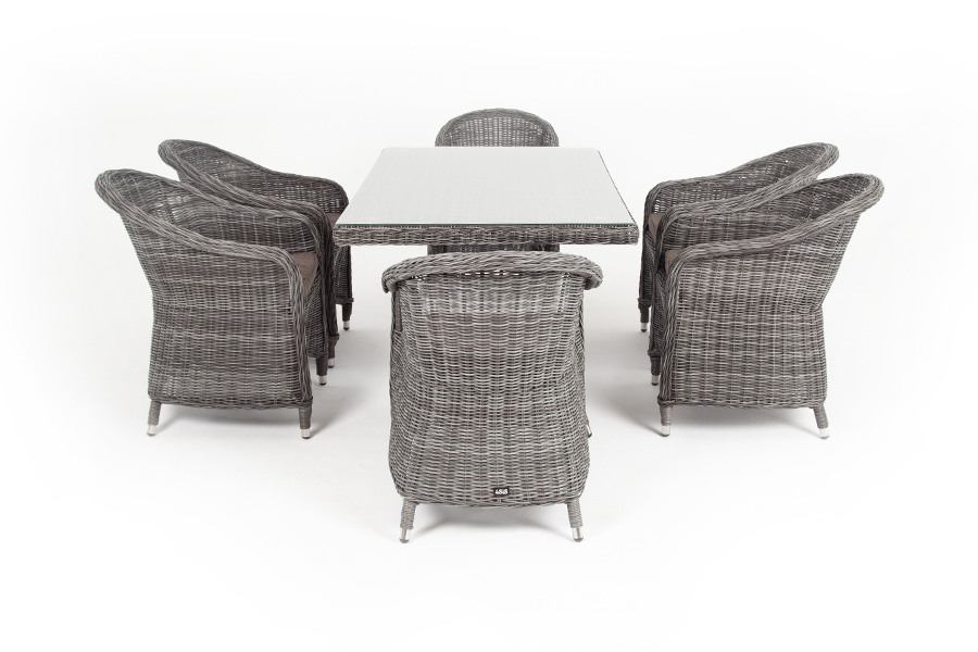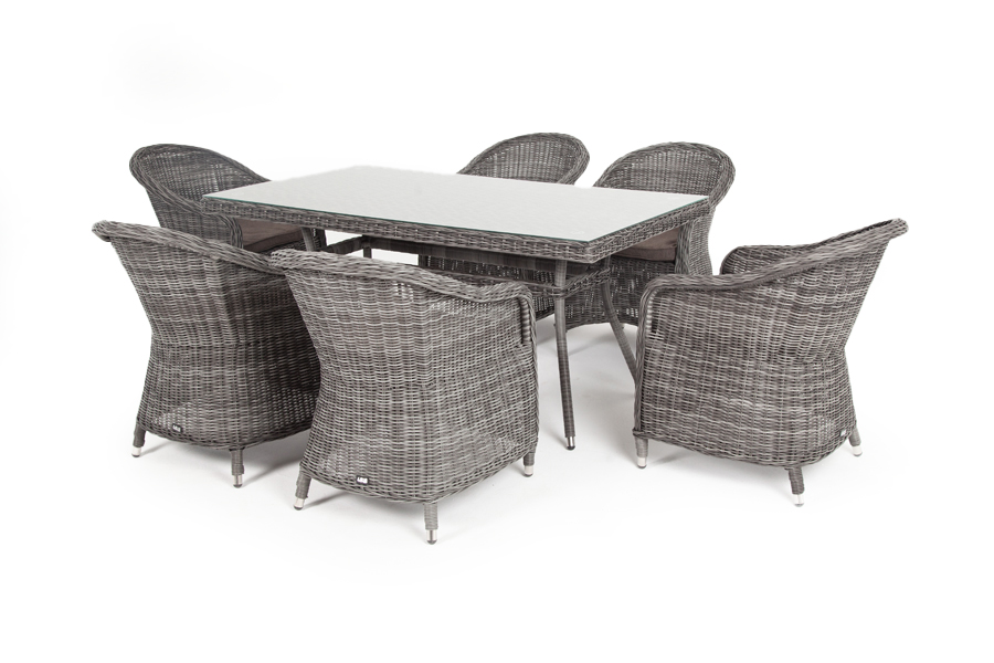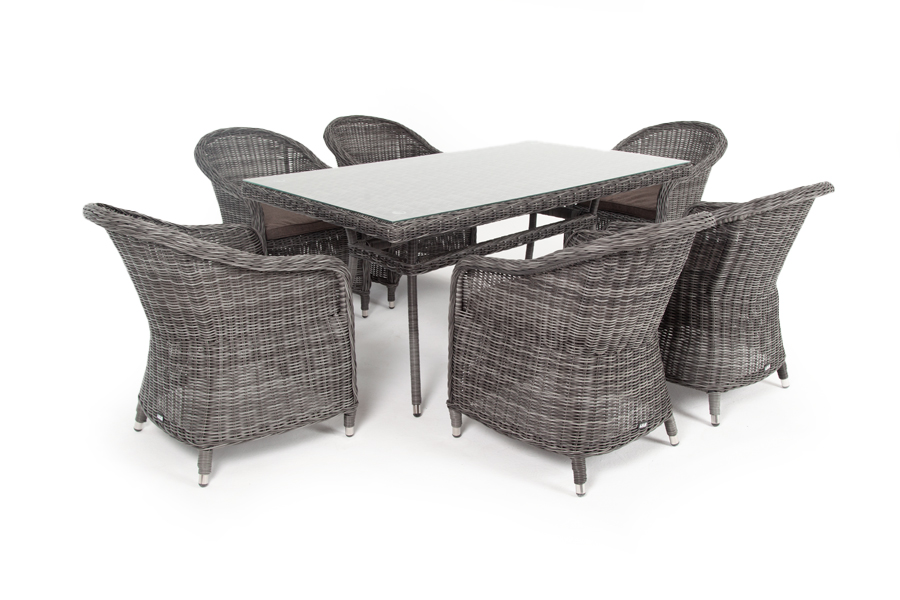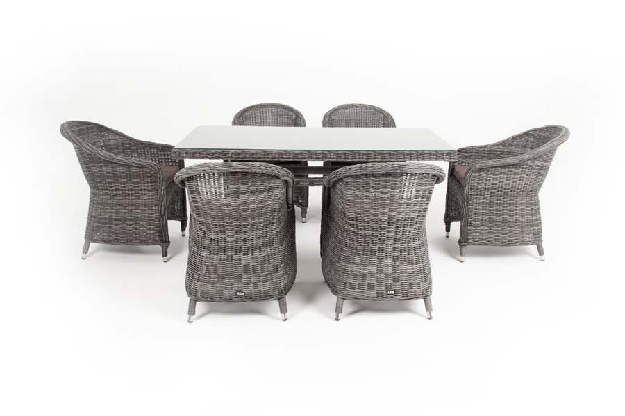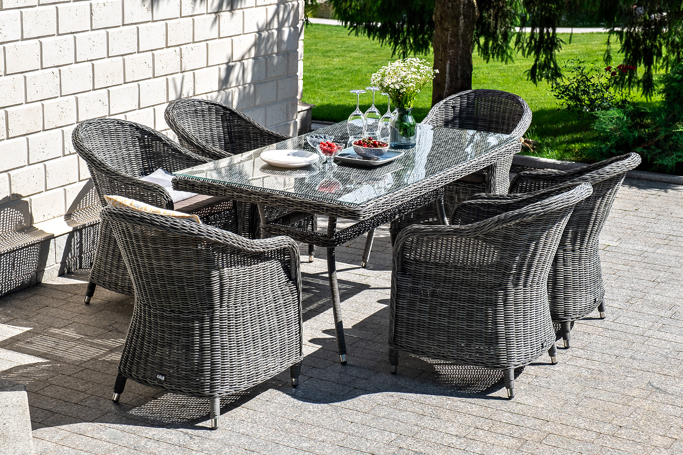 Стеклянная столешница, толщино "Латте" плетеный стол из искусственного ротанга 160х90см, цвет графит 1шт. 1 600Х900Х750, "Равенна" плетеное кресло из искусственного ротанга, цвет графит 6шт. 570Х680Х810,