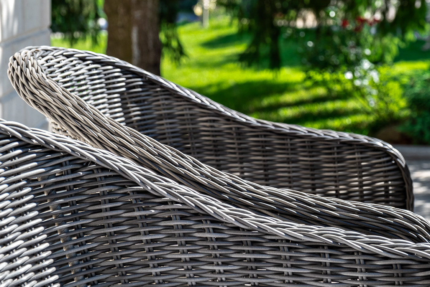 Каркас мебели сделан из прочного алюминия, который выдерживает большие нагрузки. Оплетка выполнена из искусственного ротанга ручного плетения – всесезонного износостойкого материала. Он может долго находиться под солнечными лучами и даже при низких температурах.