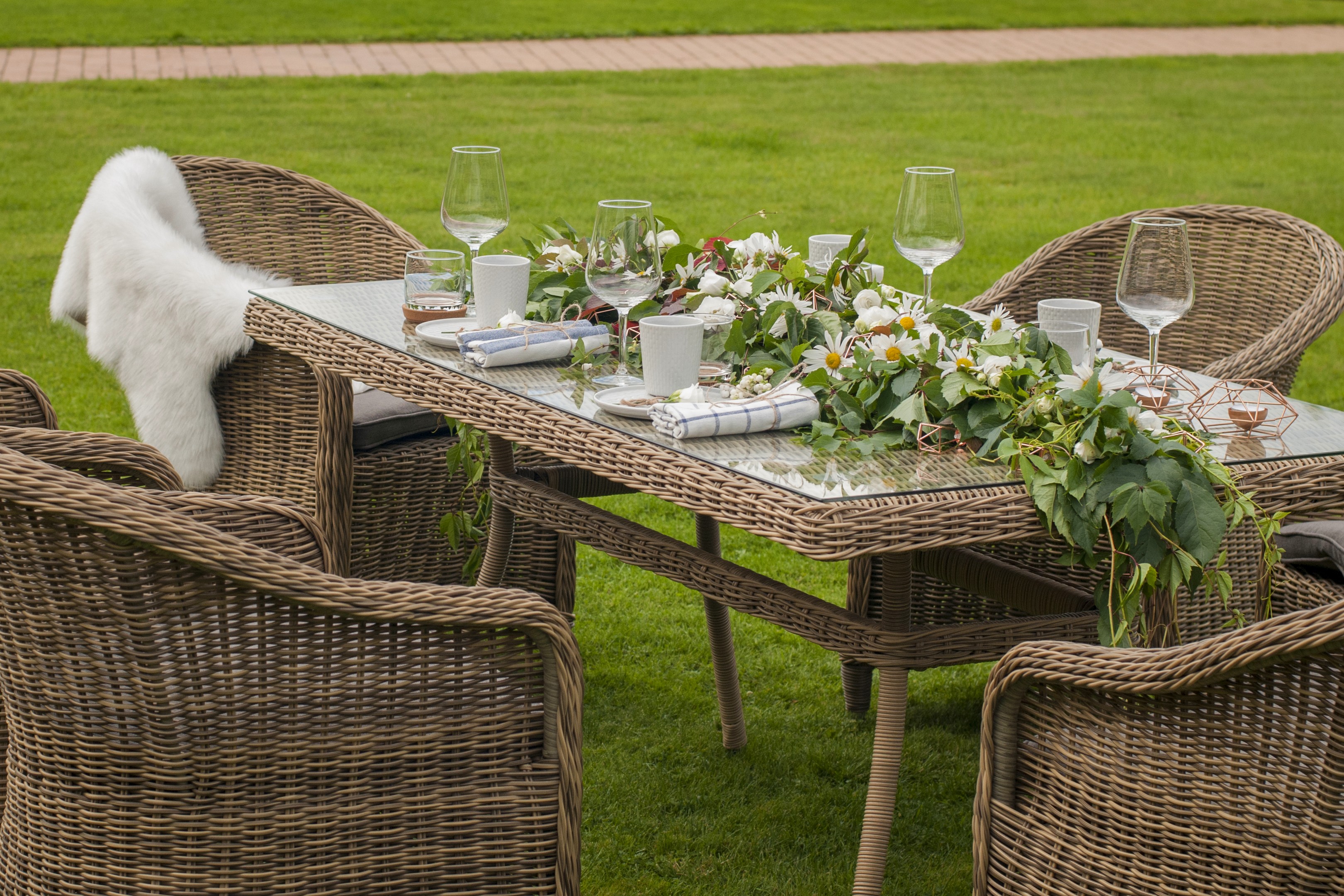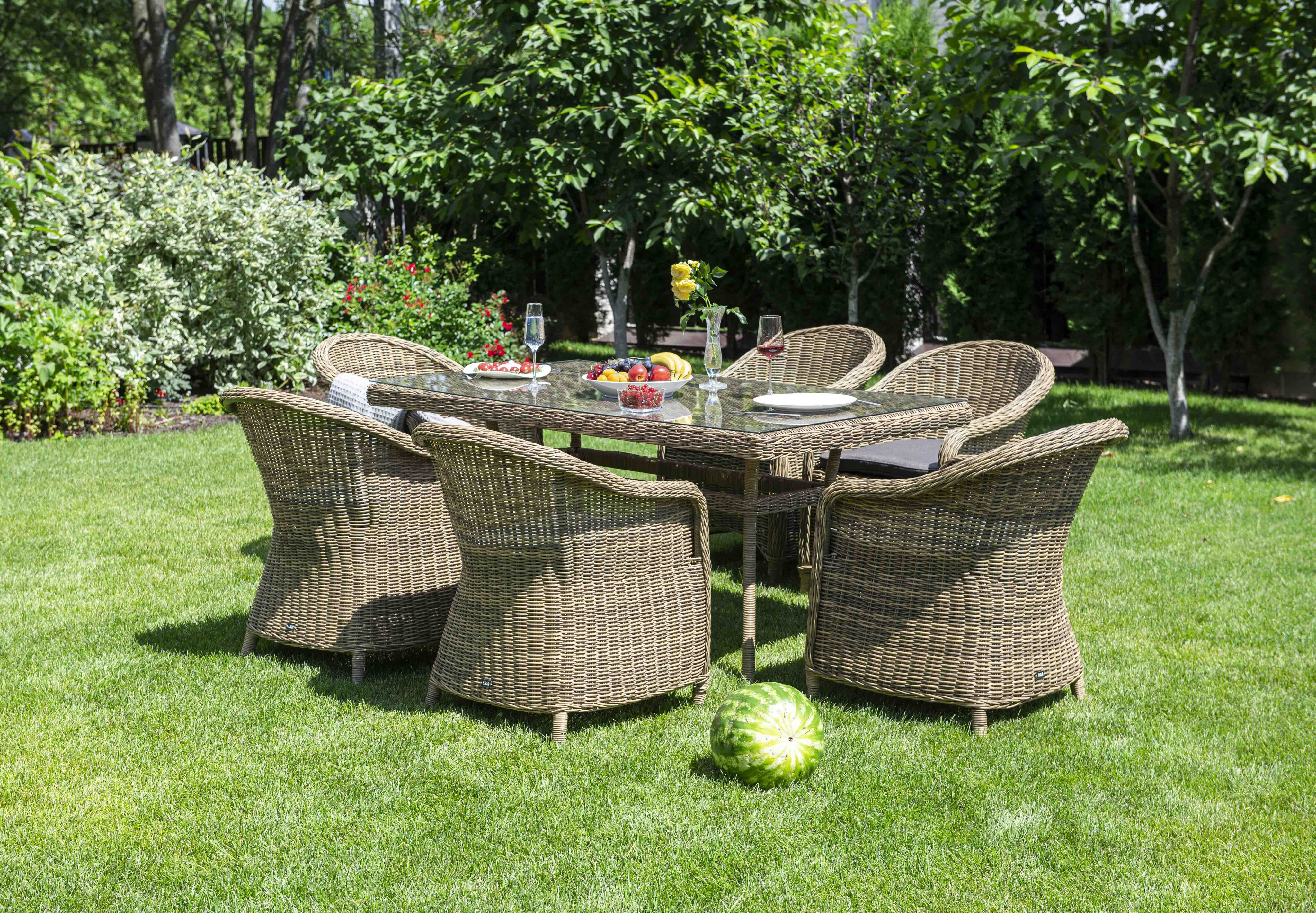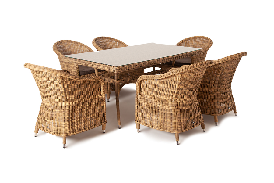 Садовая обеденная группа «Эспрессо» для шестерых персон натурального соломенного цвета.