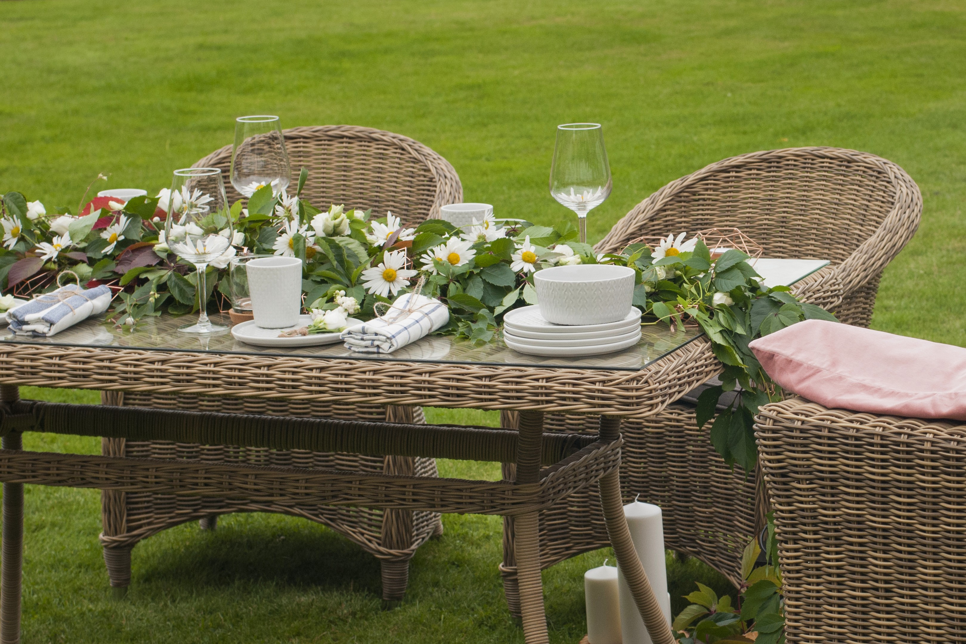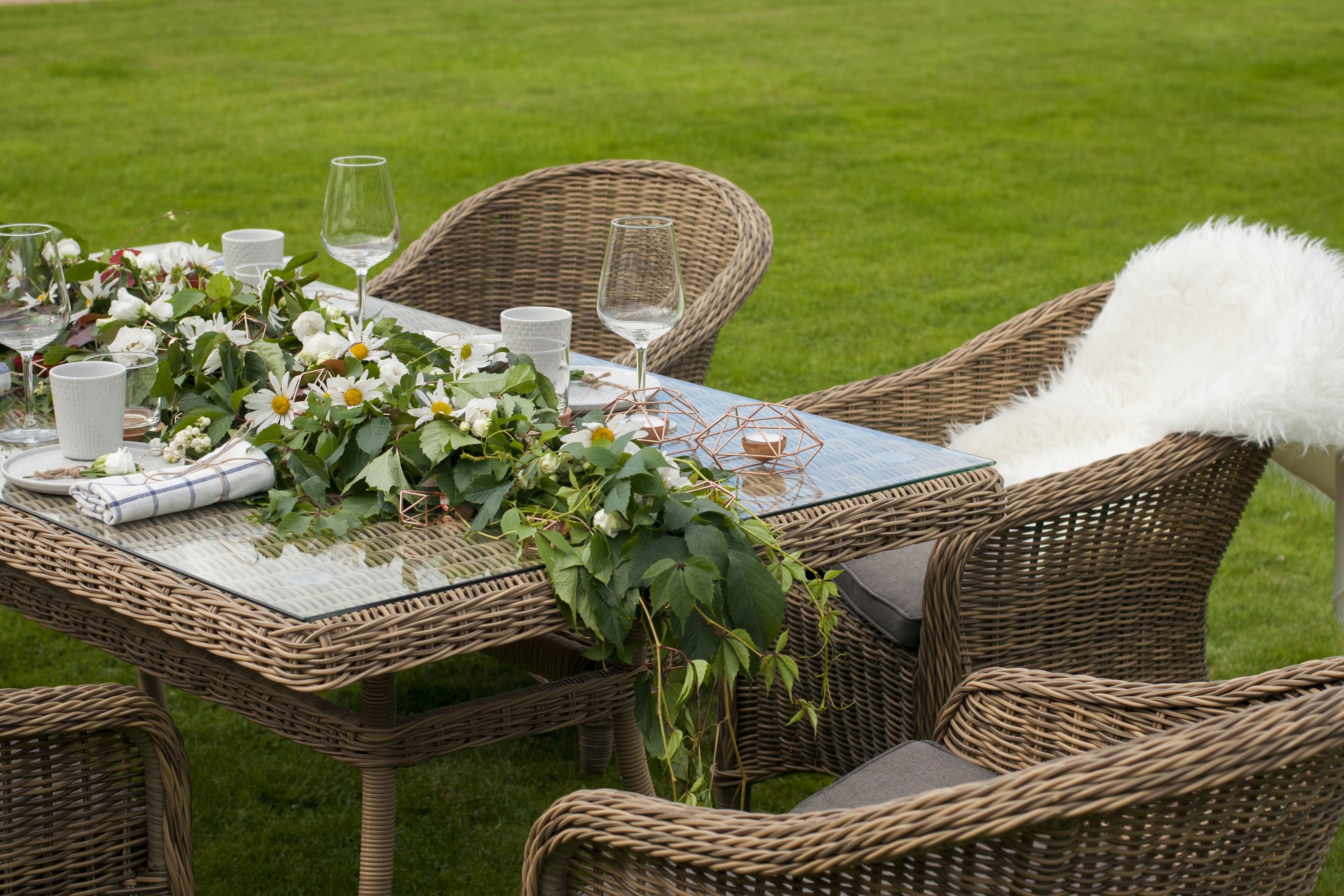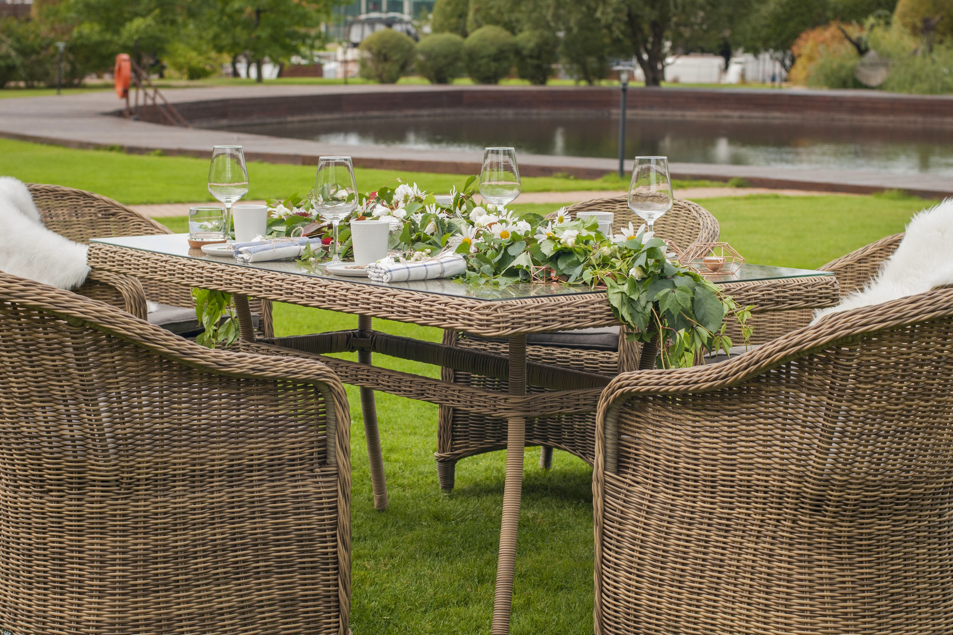 Садовая обеденная группа «Эспрессо» для шестерых персон натурального соломенного цвета.