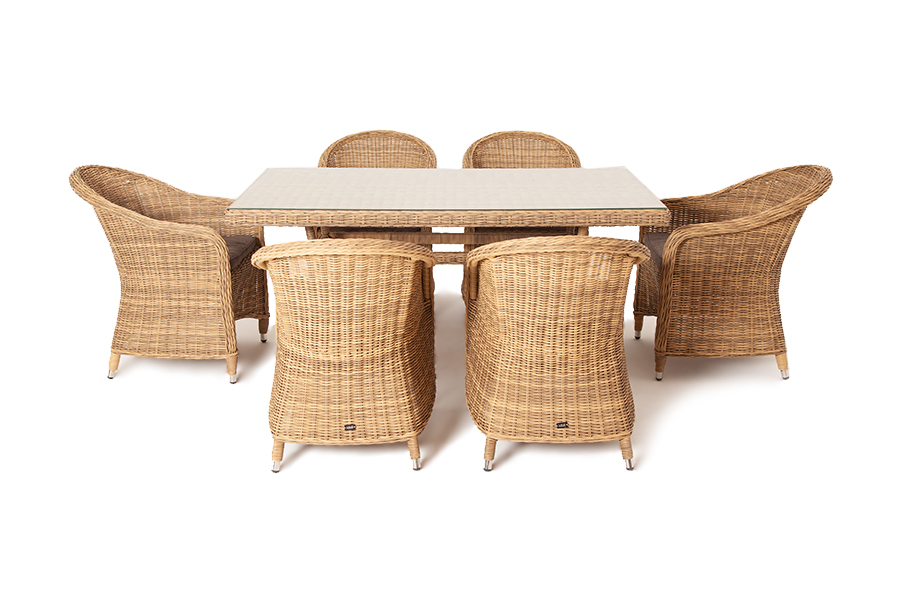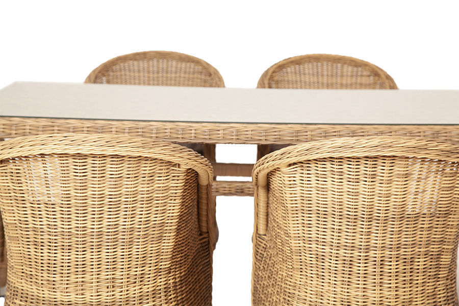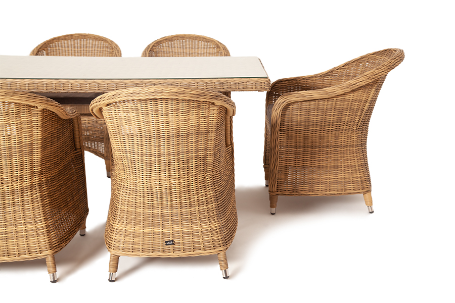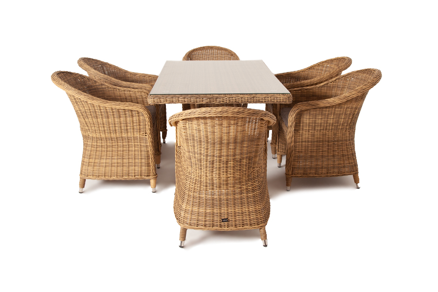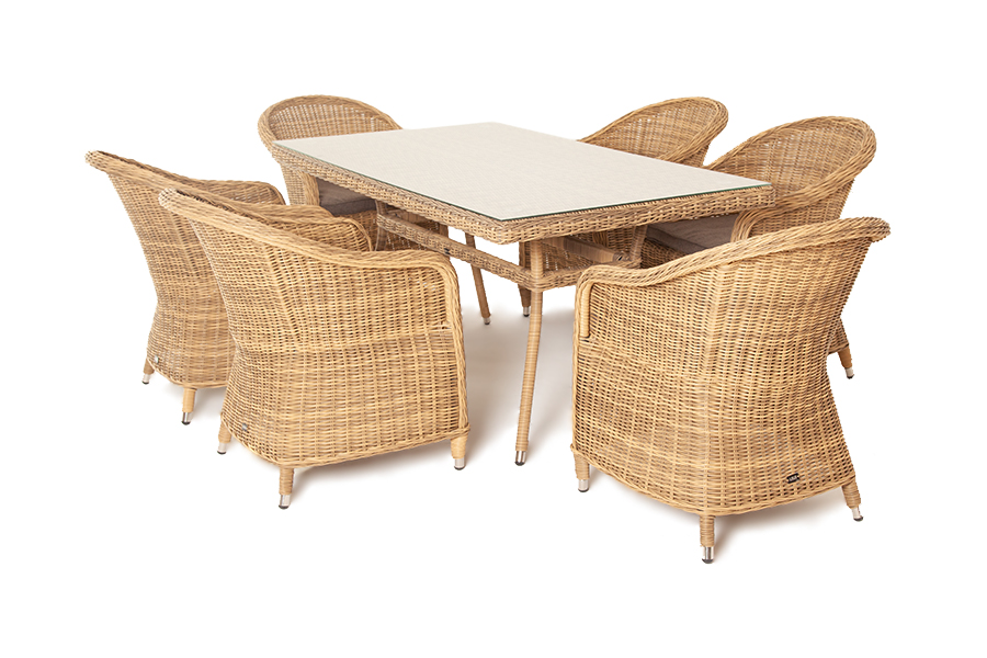 Стекля "Латте" плетеный стол из искусственного ротанга 160х90см, цвет соломенный 1шт. 1 600Х900Х750, "Равенна" плетеное кресло из искусственного ротанга, цвет соломенный 6шт. 570Х680Х810,