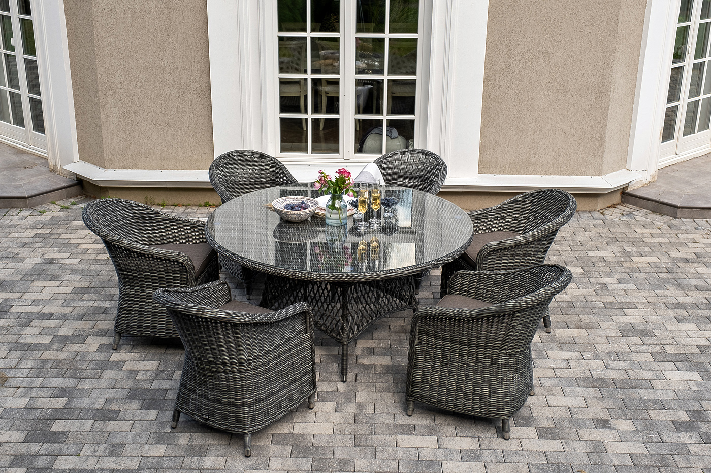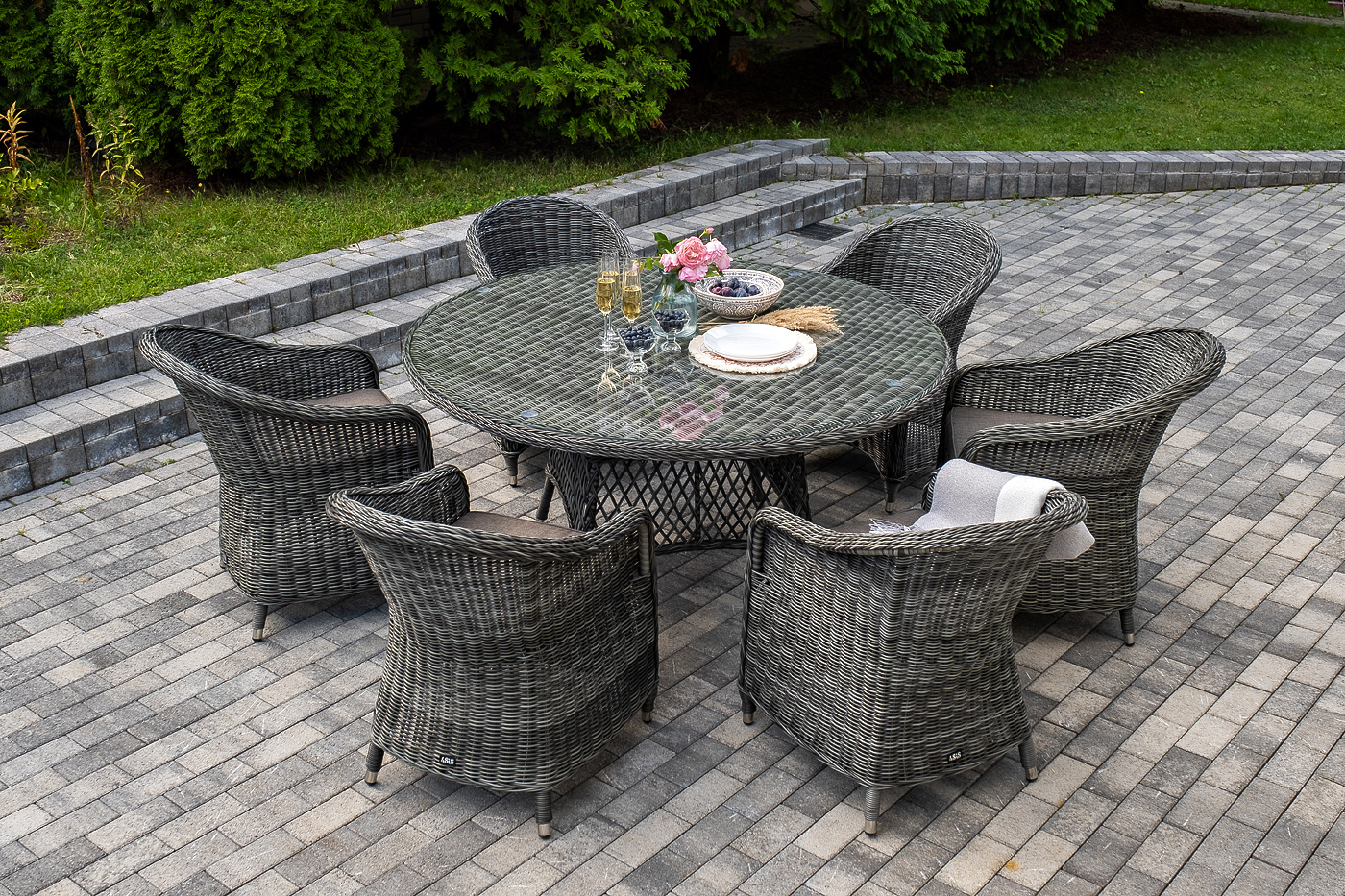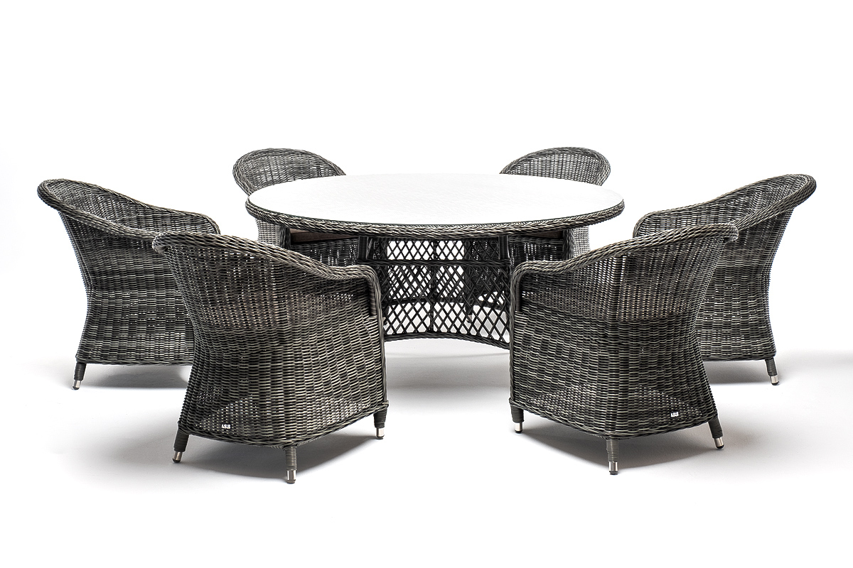 Высота спинк "Равенна" плетеное кресло из искусственного ротанга, цвет графит 6шт. 570Х680Х810, "Эспрессо" плетеный круглый стол, диаметр 150 см, цвет графит 1шт. 1 500Х1 500Х750,