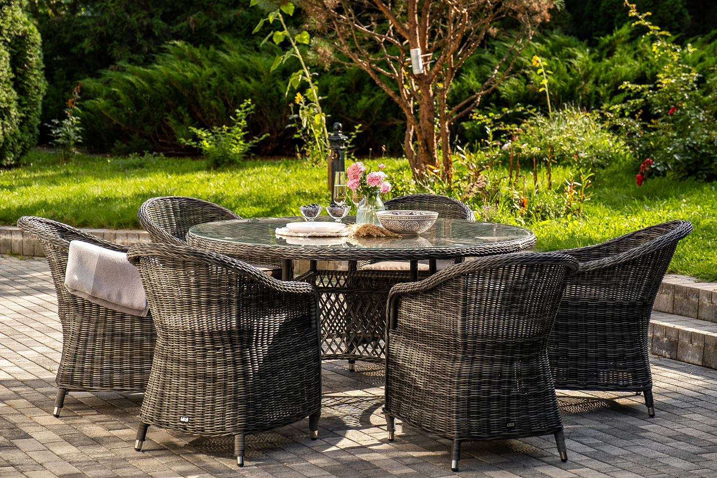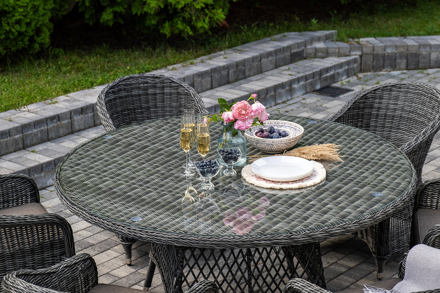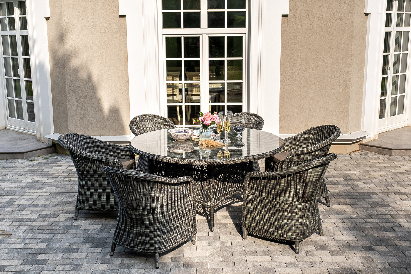 Высота спинк "Равенна" плетеное кресло из искусственного ротанга, цвет графит 6шт. 570Х680Х810, "Эспрессо" плетеный круглый стол, диаметр 150 см, цвет графит 1шт. 1 500Х1 500Х750,