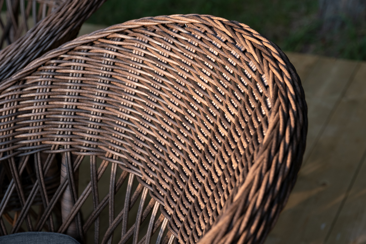 Вся мебель изготовлена из долговечного и легкого алюминия, обтянутого синтетическим ротангом. На столе для удобства эксплуатации предусмотрена столешница из ударопрочного закаленного стекла 5 мм. Стулья укомплектованы подушками на сидениях.