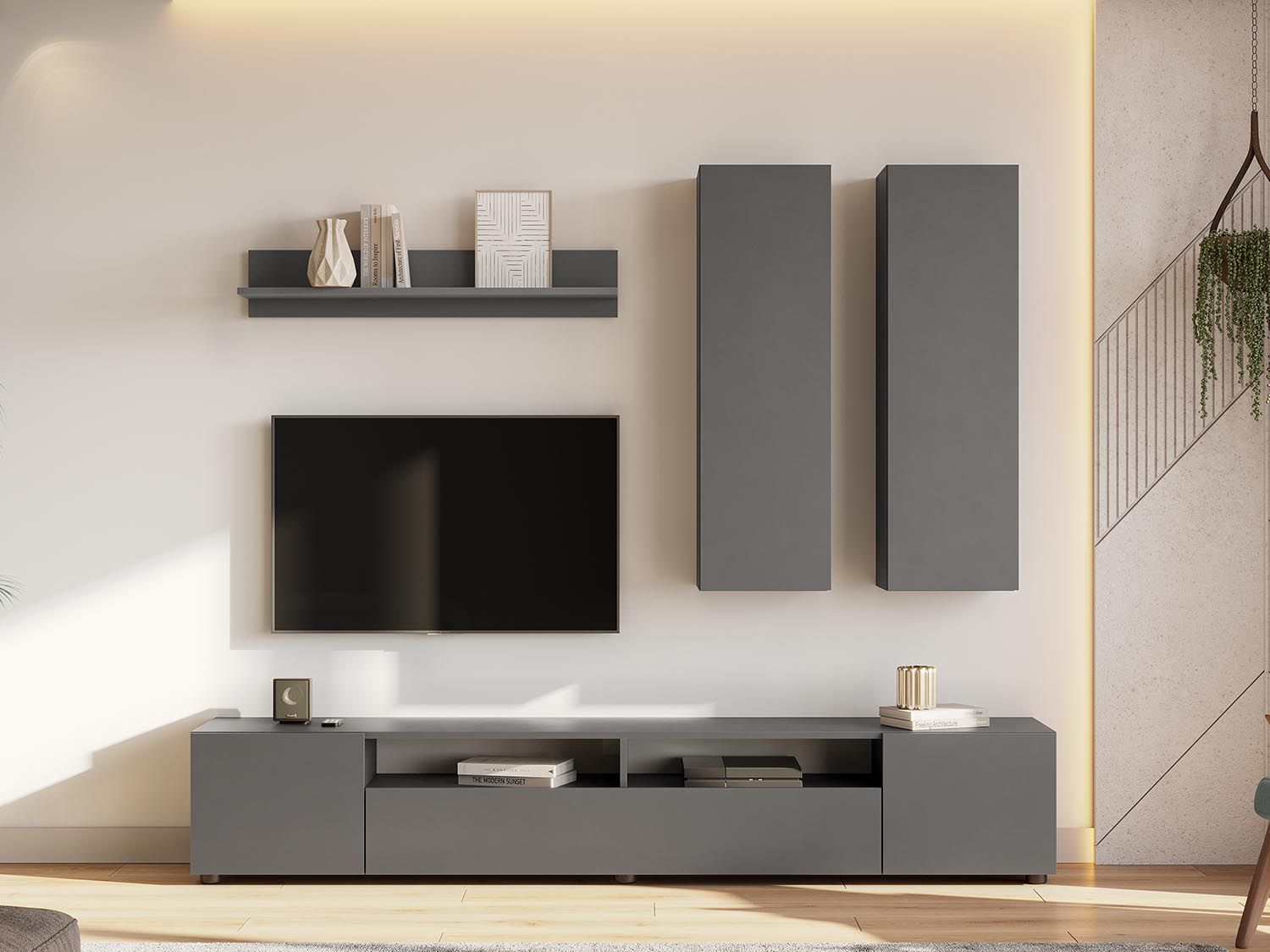 Гостиная Денвер 2 / Графит серый - функциональный модульный набор мебели для гостиной комнаты.