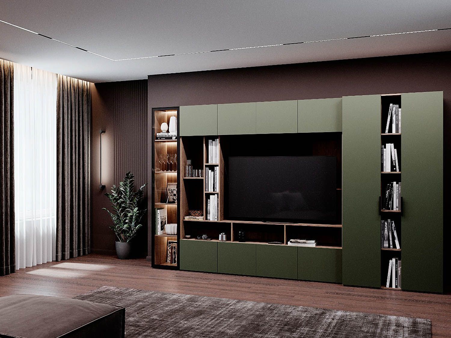 Гостиная Харди 3 Дуб Делано Темный / Зеленый - стильный и современный набор гостиной мебели.