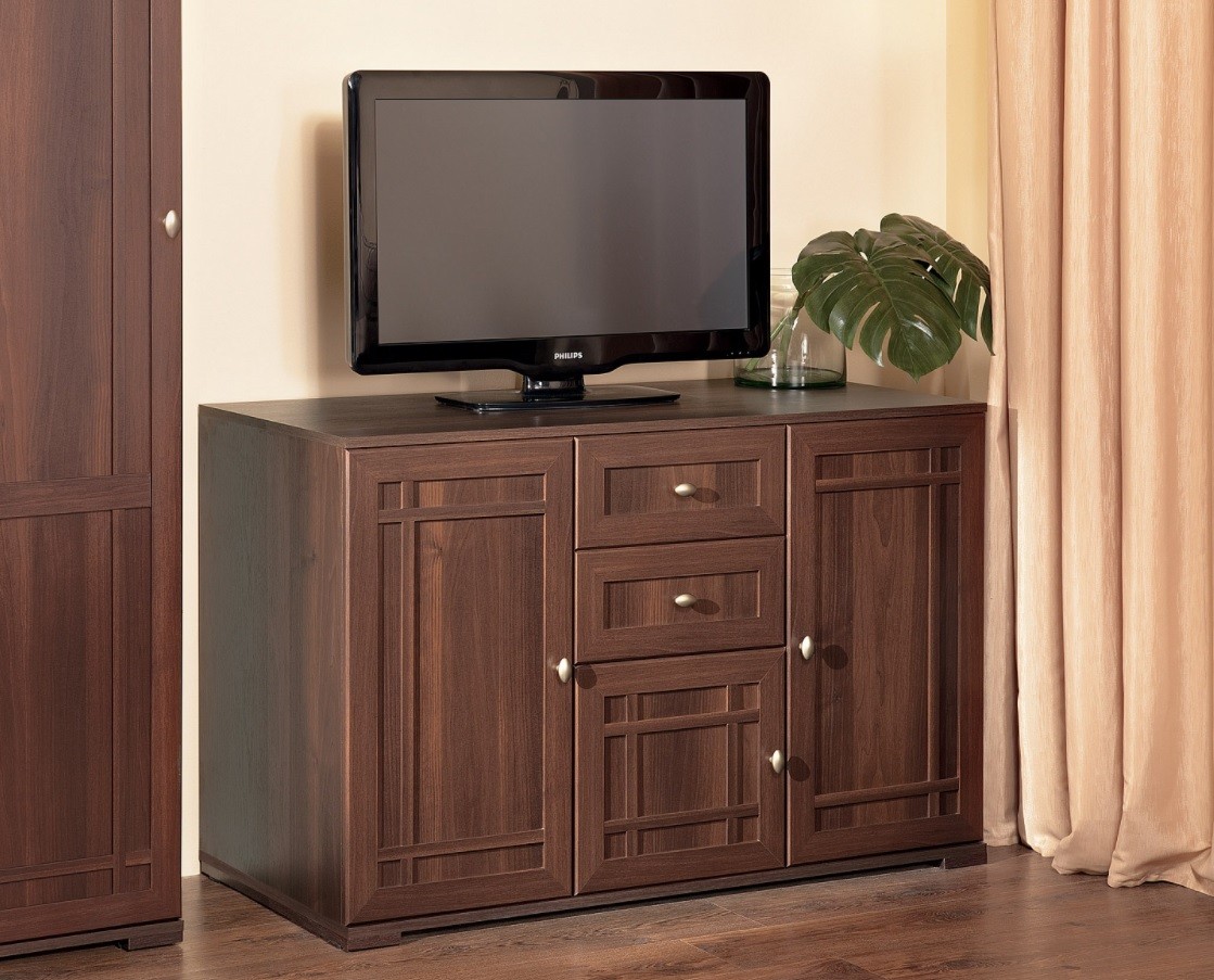 Гостиная Sherlock создана для любителей качественной и визуально привлекательной мебели в классическом исполнении. Особенность коллекции - необычные рамочные фасады из МДФ, дополненные тонкими накладками, что придает модулям особую атмосферу. Мебель выполнена в трех декорах на выбор с имитацией текстуры натурального дерева и украшена стильными металлическими ручками. Широкий ассортимент модулей позволит Вам грамотно обыграть пространство гостиной, не загромождая его, и украсить интерьер. Например, комплект 1 изготовлен в декоре "орех шоколадный" и состоит из шкафной группы, угловой открытой полки, туалетного стола (который можно использовать в качестве письменного), навесного шкафа и тумбы многоцелевого назначения.