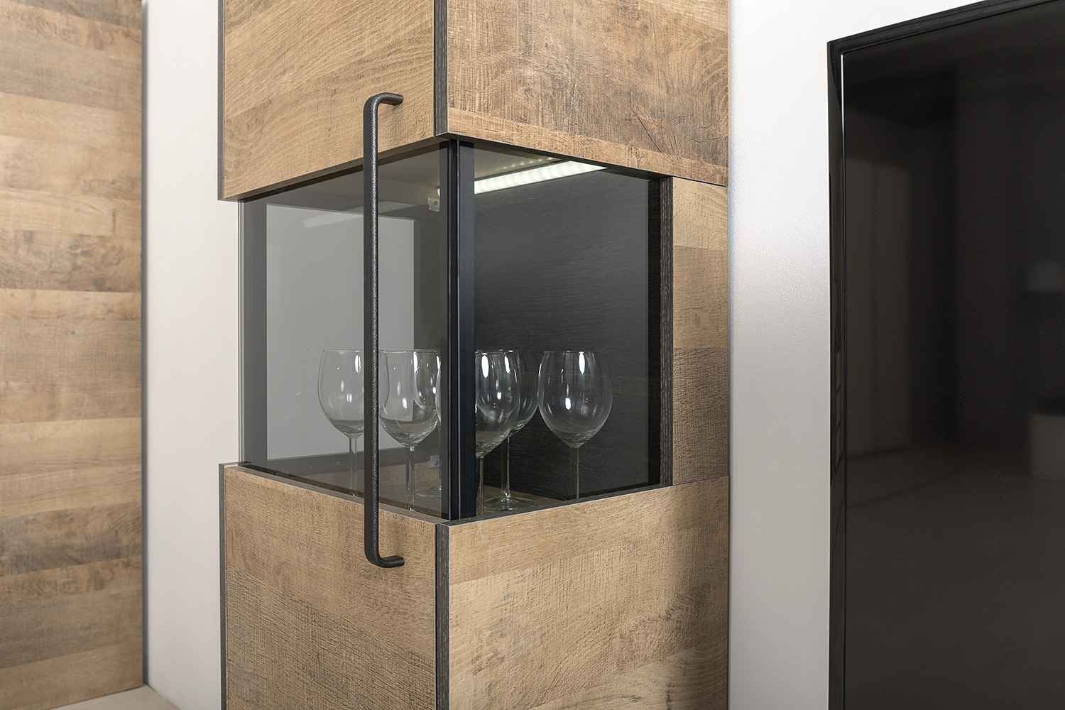 - Трувор шкаф-пенал с витриной 13.205 Дуб Гранж Песочный/Интра