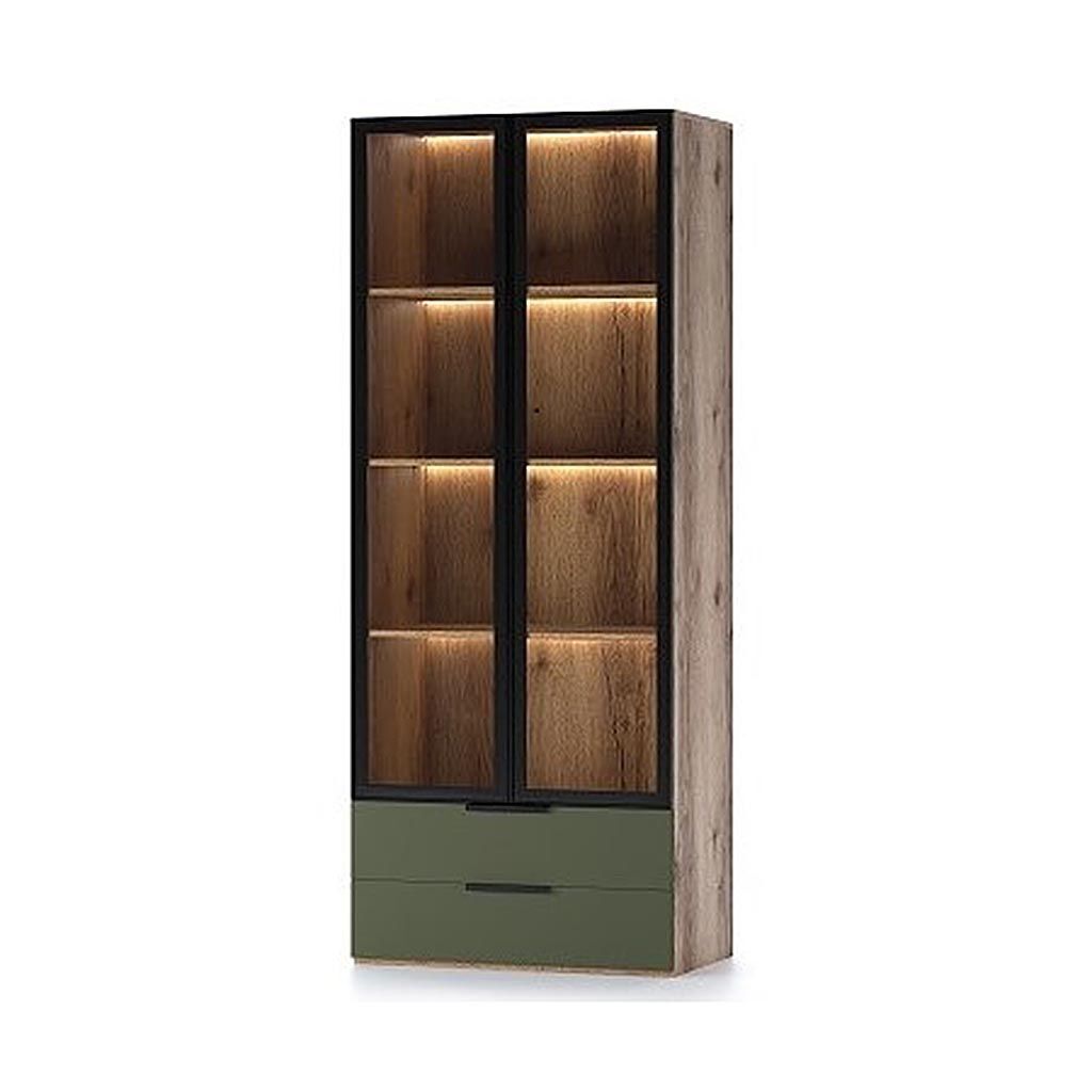 Харди двухдверный со стеклянными дверками Дуб Делано Темный / Зеленый