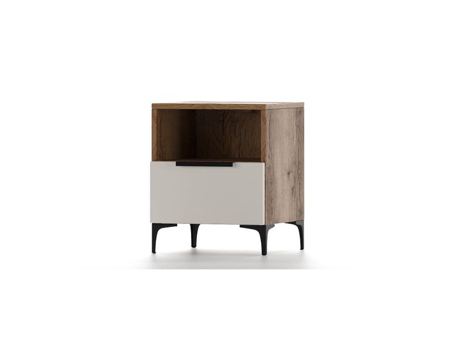 Харди тумба прикроватная Дуб Делано Темный / Супермат Джелато сделает интерьер спальни уютным и комфортным.