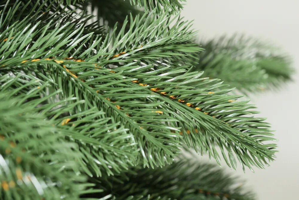 Материал хвои – 100% РЕ, что гарантирует долговечность и сохранение внешнего вида елки на протяжении всего срока службы. Цвет хвои – зеленый, что соответствует естественному виду настоящей елки.