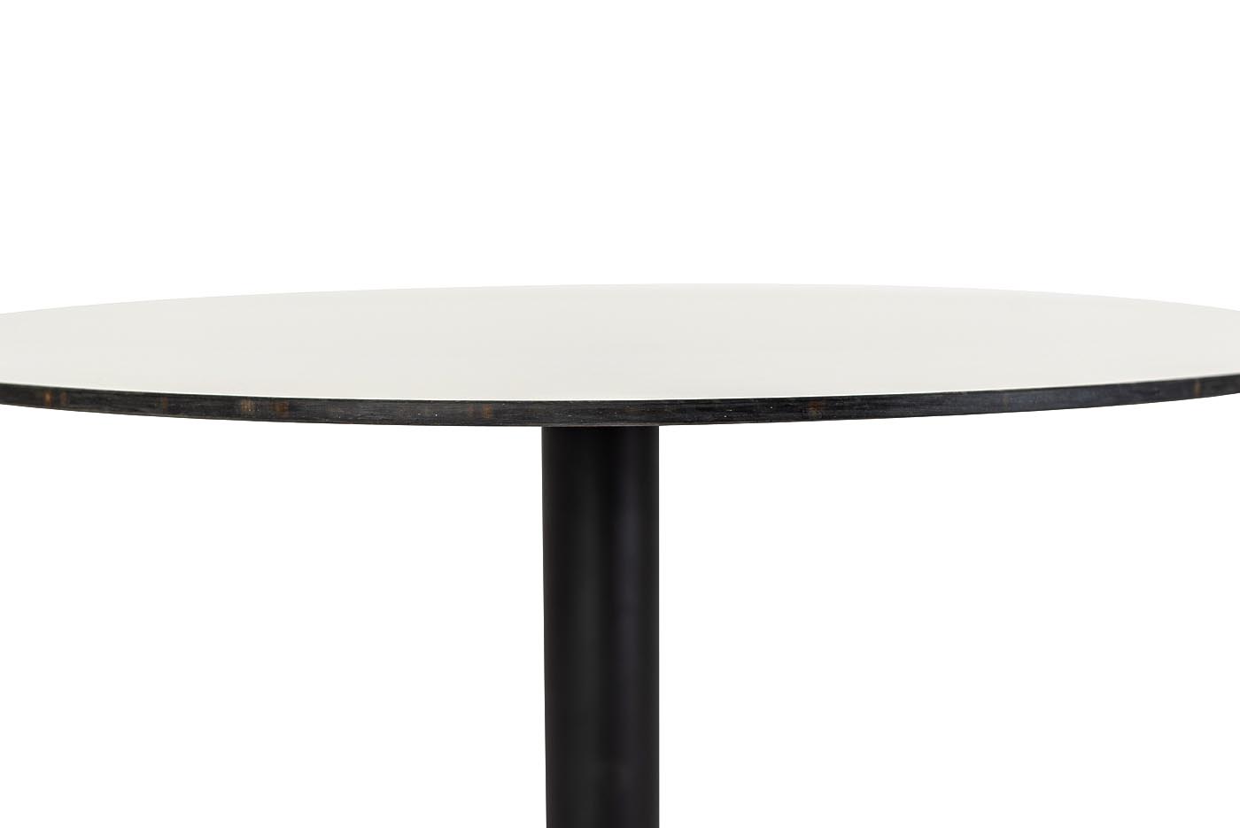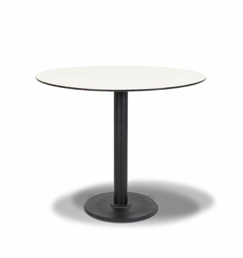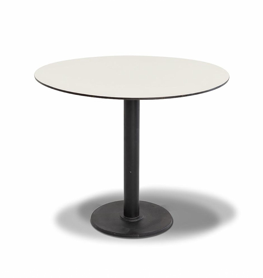 Круглый стол «Каффе» со столешницей из HPL молочного цвета. Это высококачественный ударопрочный компакт-пластик, обладающий низкой пористостью, что предотвращает впитывание жидкостей, поэтому столы из HPL идеально подходит для обеденных зон. Толщина столешницы – 12 мм.