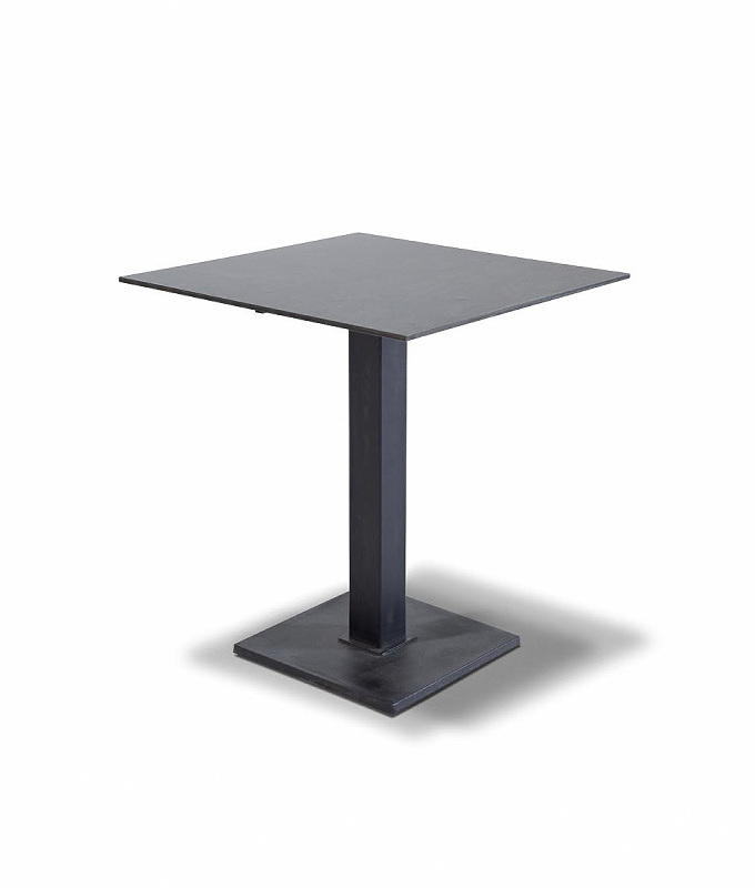 Подстолье изготовлено из чугуна черного цвета, с рамкой для крепления столешницы и широким основанием 400×400 мм. Столешница - из высококачественного монолитного компакт-пластик HPL, толщиной 12 мм, цвет «серый гранит».