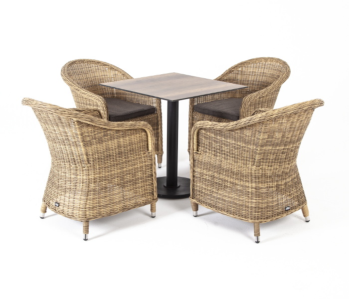 Высота спинки – 400 мм. "Каффе" стол из HPL квадратный 70х70см, цвет "дуб" 1шт. 700Х700Х750, "Равенна" плетеное кресло из искусственного ротанга, цвет соломенный 4шт. 570Х680Х810,
