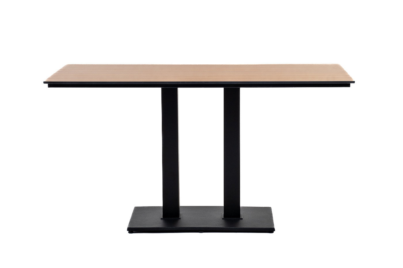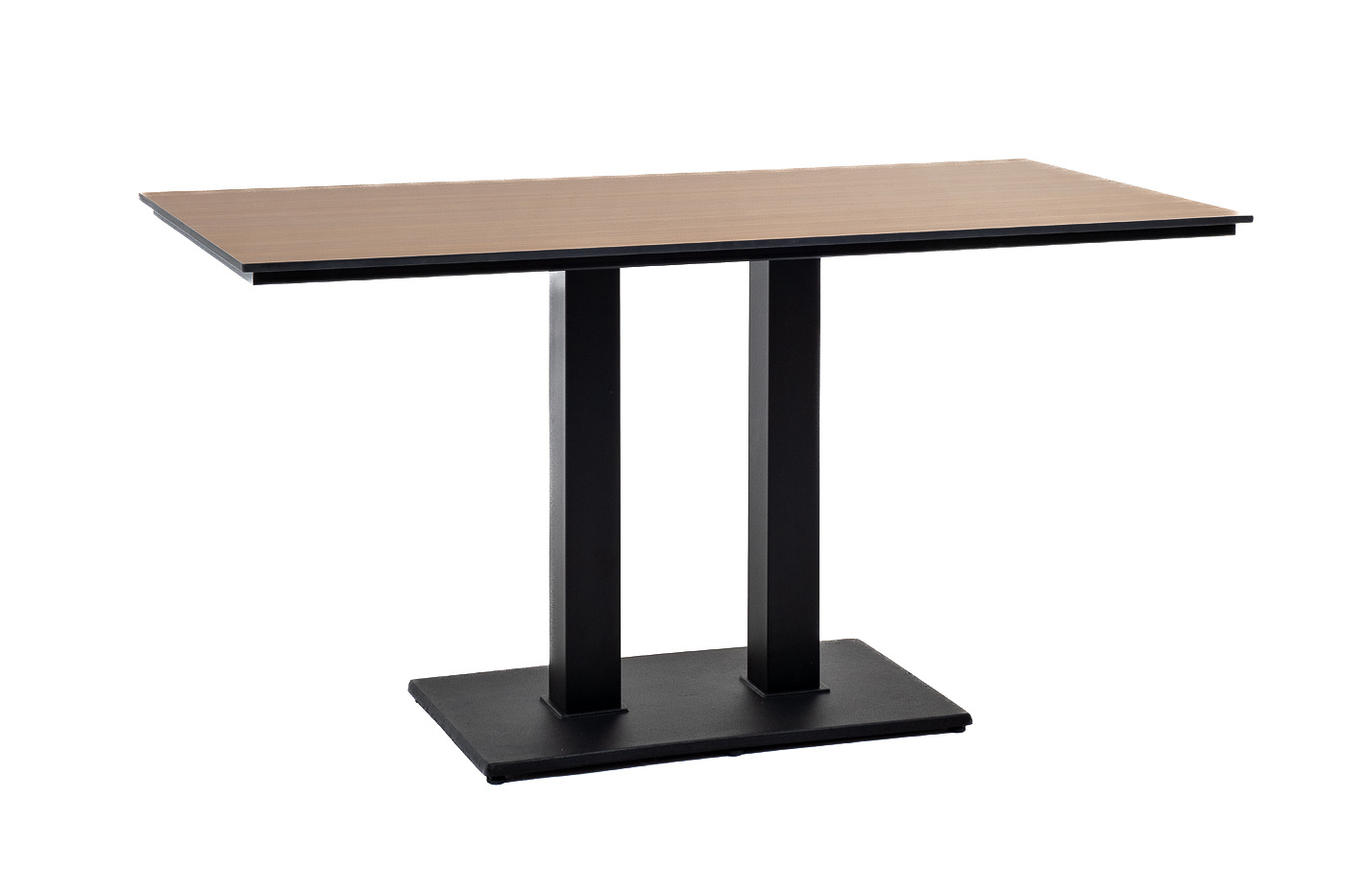 Двойное подстолье изготовлено из металла, столешница - из высококачественного монолитного компакт-пластик HPL, толщиной 12 мм, цвет «дуб».