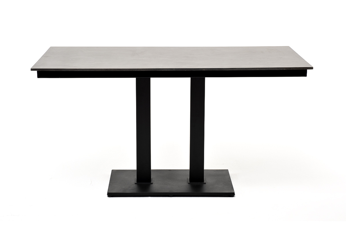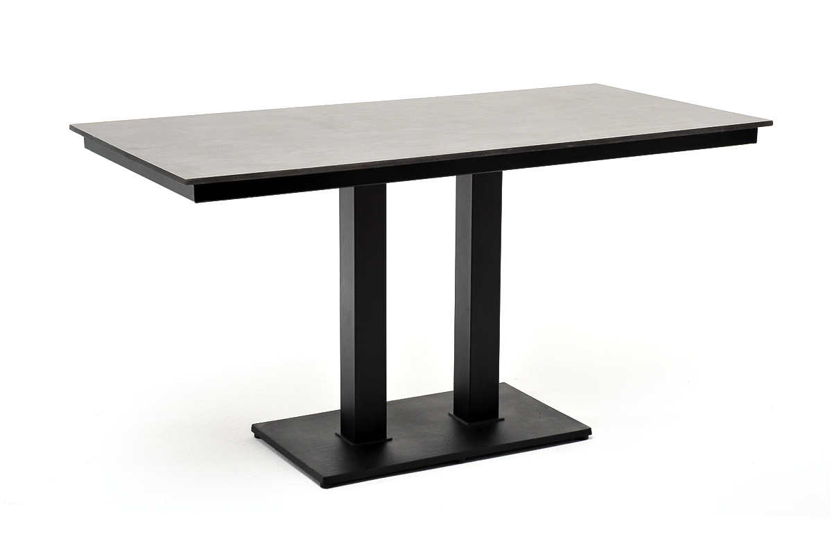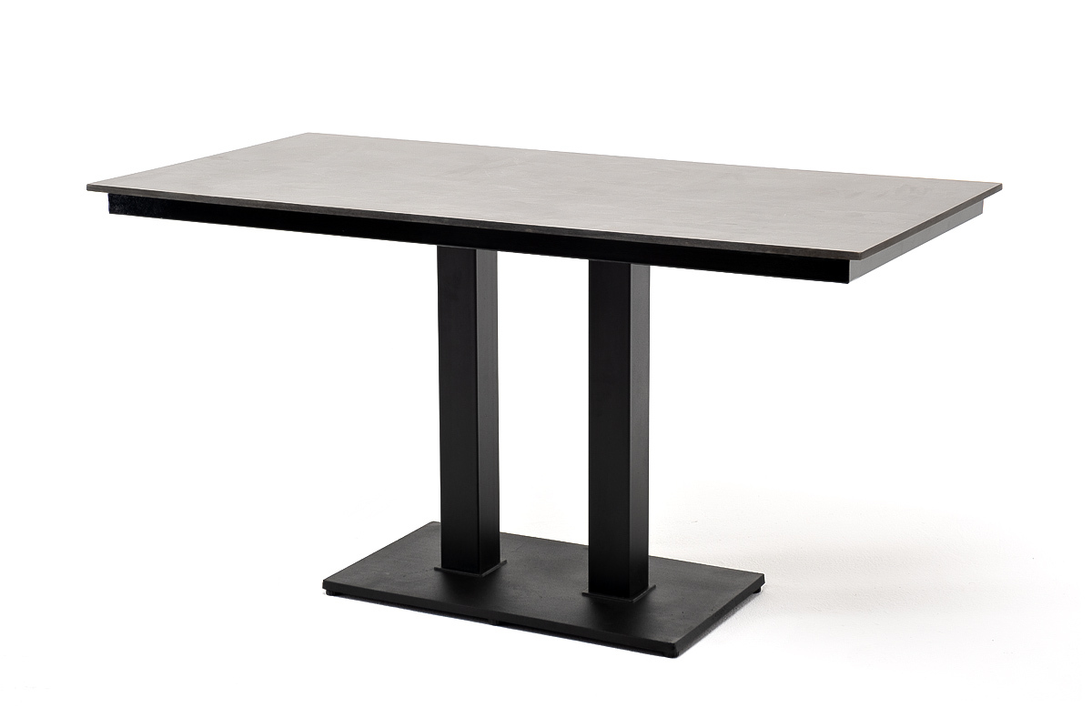 Двойное подстолье изготовлено из металла, столешница - из высококачественного монолитного компакт-пластик HPL, толщиной 12 мм, цвет «серый гранит».