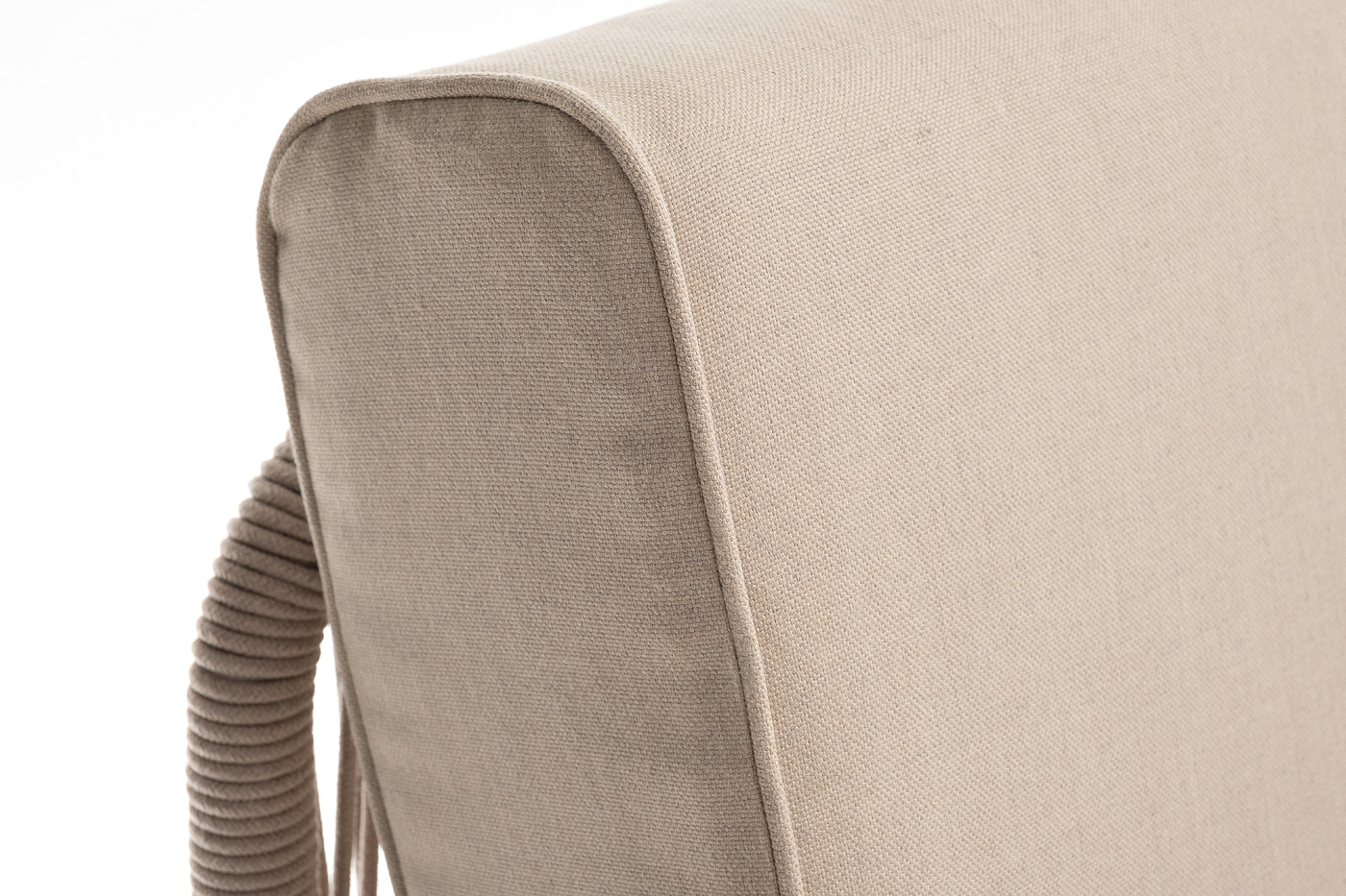 Модуль имеет алюминиевый каркас, окрашенный порошковой краской в белый цвет. Боковины каркаса вручную оплетены роупом - эластичными синтетическими лентами, изготовленными из высокопрочных полиэфирных волокон. Цвет оплетки - бежевый.