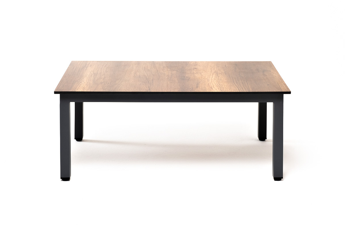 Каркас журнального столика изготовлен из алюминия, окрашенного в цвет темно-серый (RAL 7024). Столешница - из высококачественного монолитного компакт-пластик HPL, цвет «дуб».