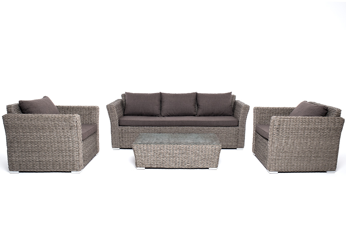 Кресла и диван идут в комплекте с подушками с серы "Капучино" диван из искусственного ротанга (гиацинт) трехместный с подушками, цвет серый 1шт. 2 220Х865Х815, "Капучино" кресло из искусственного ротанга (гиацинт), цвет серый 2шт. 1 040Х865Х815, "Капучино" журнальный столик из искусственного ротанга (гиацинт), цвет серый 1шт. 1 110Х660Х340,