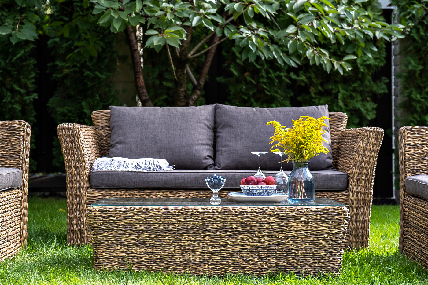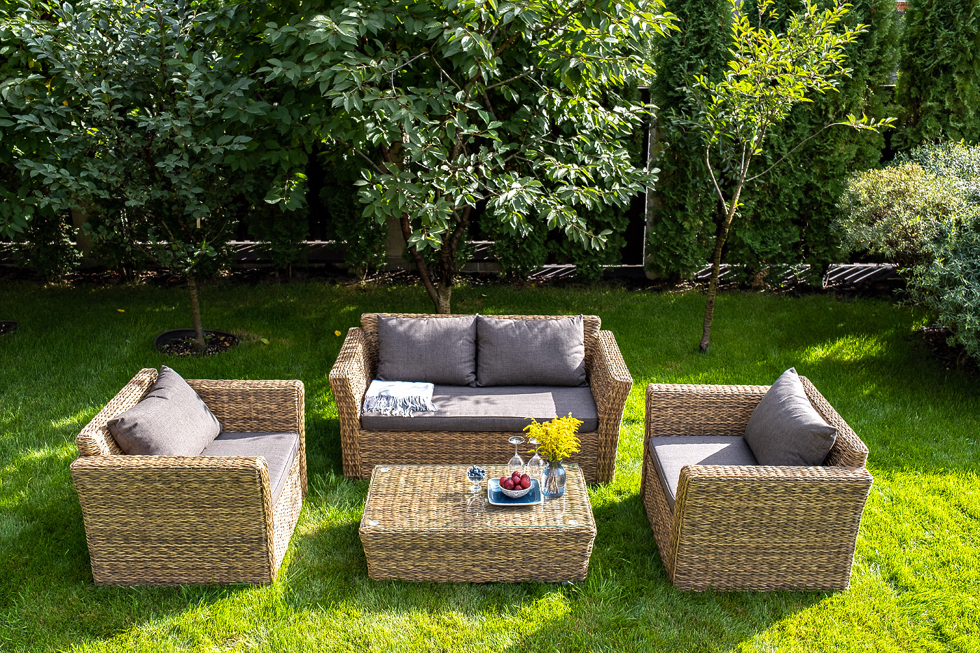 - плетеный журнальный столик (размер – 1100×660×340 мм).