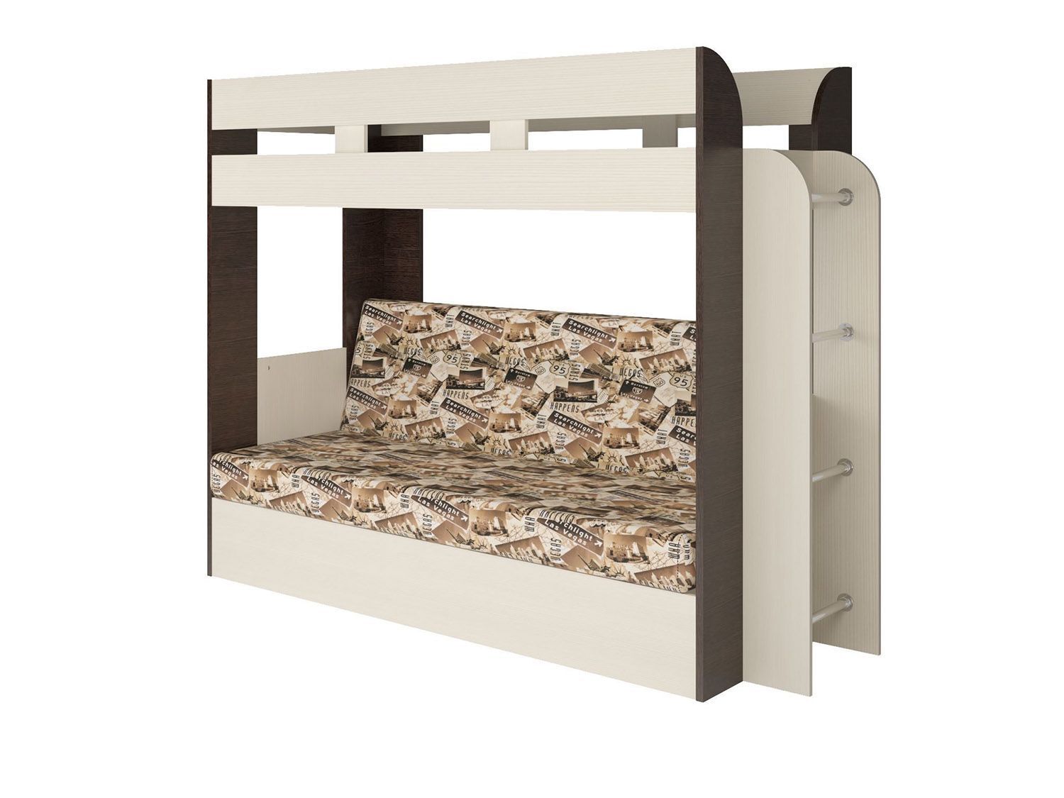 Карамель 75 кровать-диван Ясень Анкор Светлый / Бодега Темный / Ткань Латте станет решением для интерьера детской комнаты для двух детей.