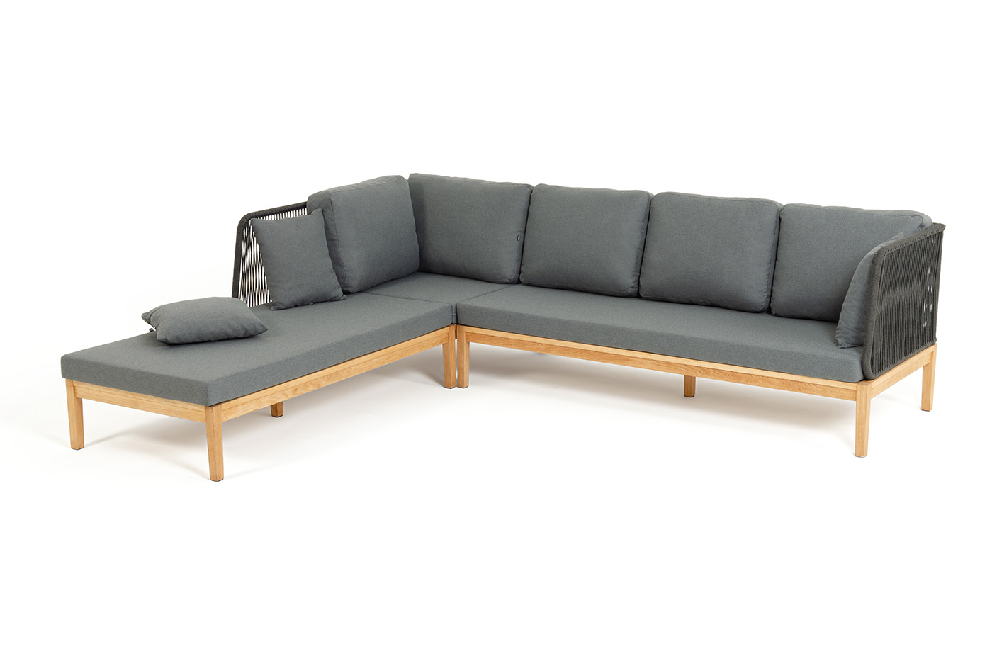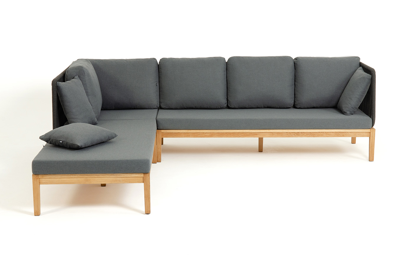 Боковины каркаса вручную оплетены роупом - эластичными синтетическими лентами, изготовленными из высокопрочных полиэфирных волокон. Цвет оплетки - темно-серый. Основание дуб.
