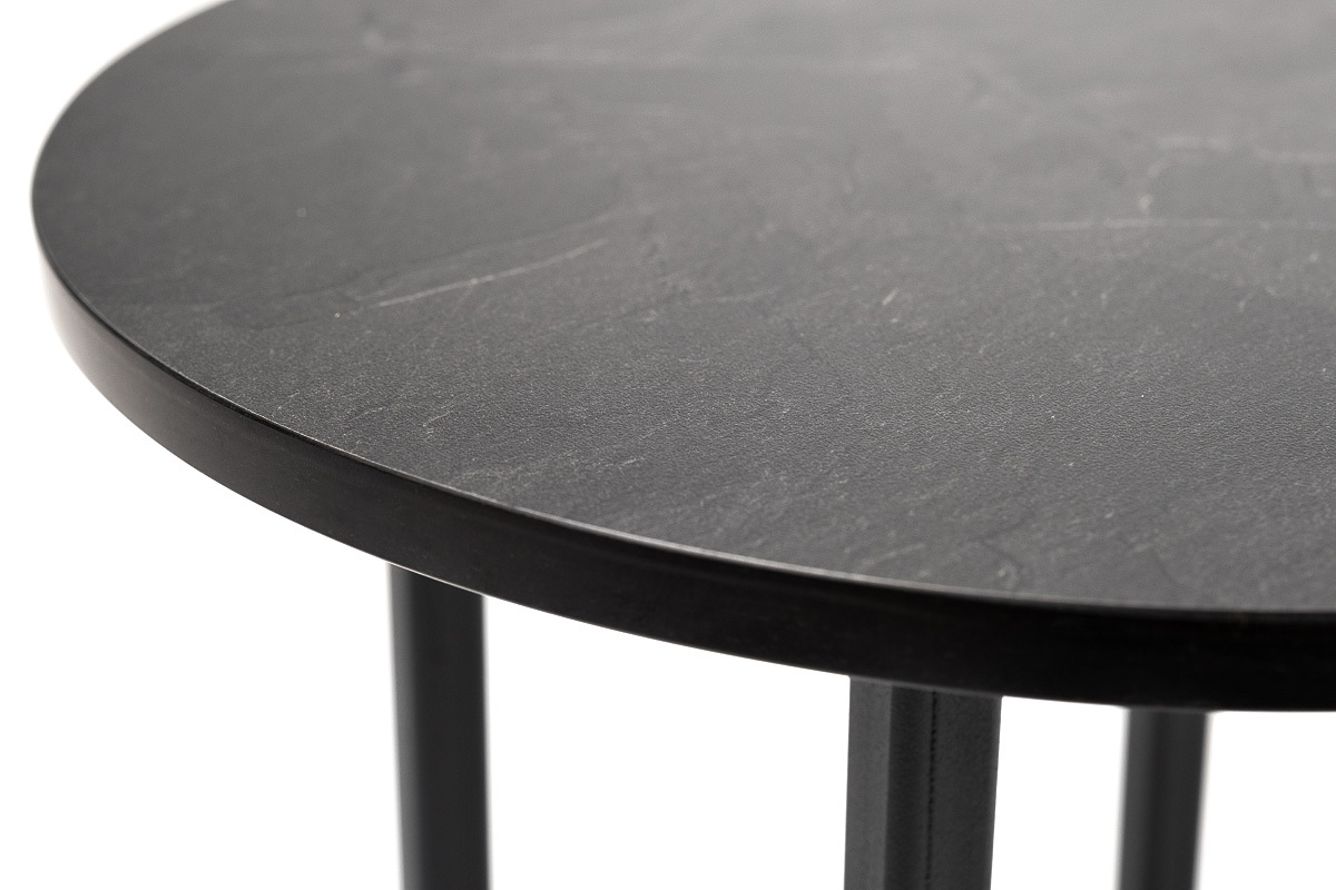 Подстолье столика выполнено из прочной стали, которая гарантирует устойчивость и надежность, а также имеет стойкое покрытие порошковой краской черного цвета. Благодаря этому, интерьерный столик идеально подходит для использования на открытых террасах и верандах.