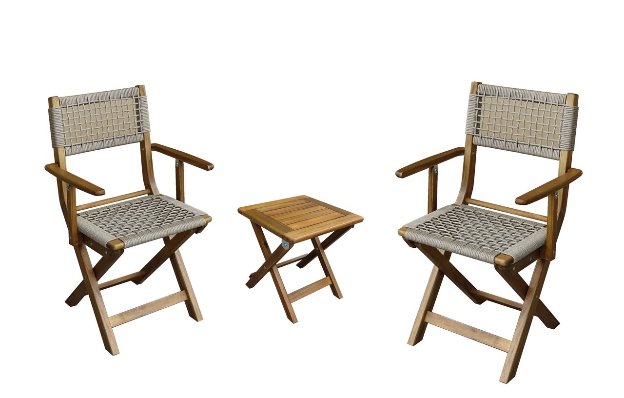 CALISTO – современная коллекция садовой мебели из акации, выполненная в комбинации натурального веревочного плетения rope, массива акации и бежевых подушек.