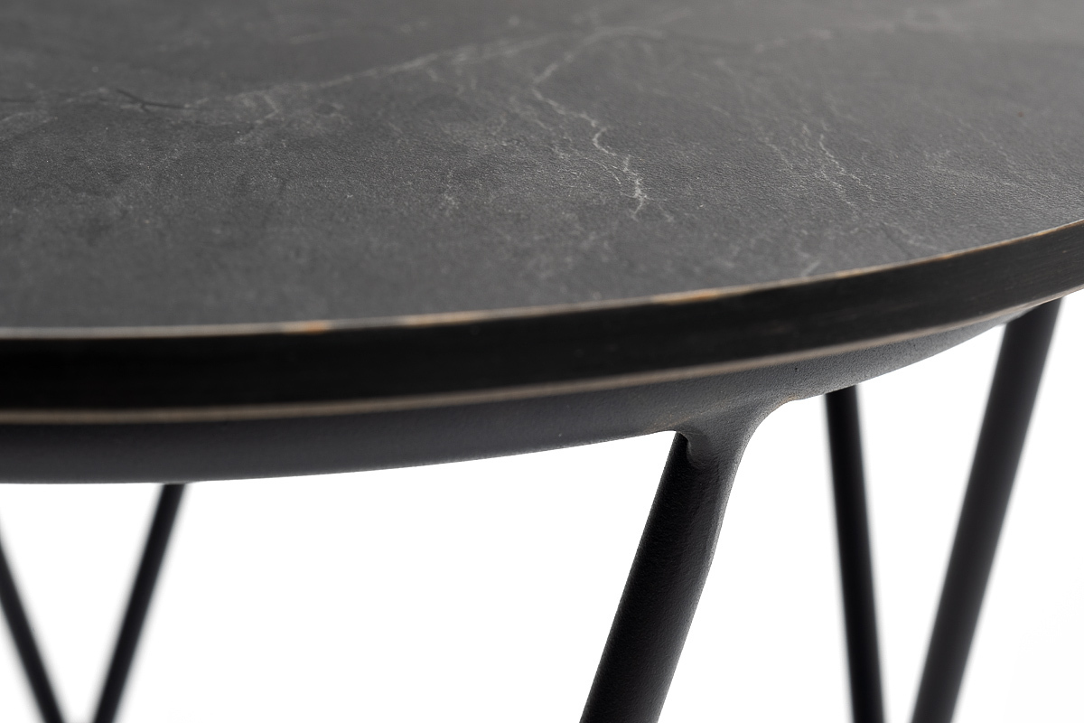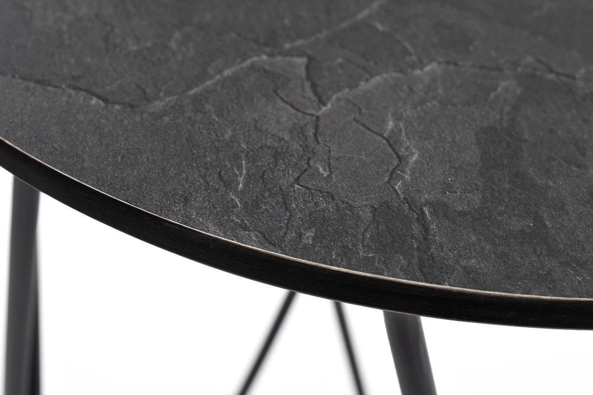 Круглый журнальный столик «Колумбия» каркас изготовлен из алюминия, окрашенного в темно-серый цвет. Столешница выполнена из высококачественного монолитного компакт-пластика HPL, толщиной 12 мм. Цвет столешницы - «серый гранит».