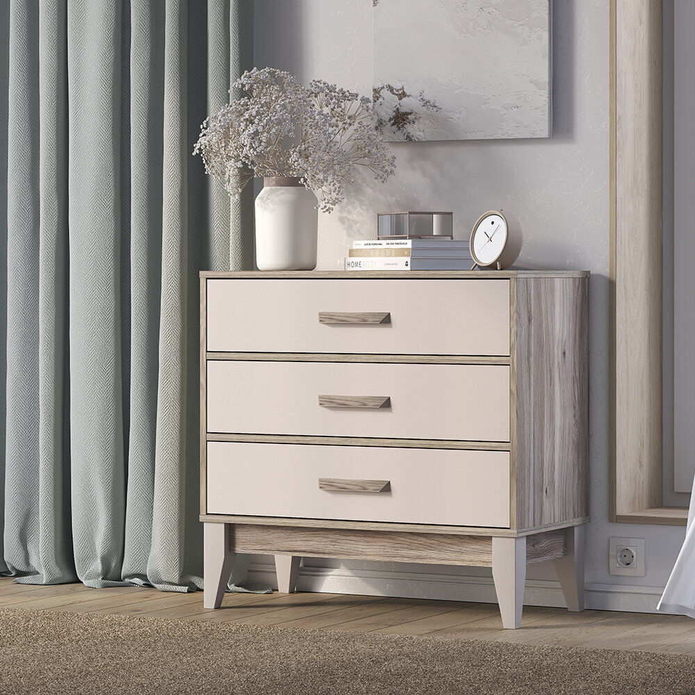 Комод Скандика оснащён тремя вместительными выдвижными ящиками с плавным механизмом открытия, на шариковых направляющих. Он подойдет и для спальни, и для гостиной, и для детской.