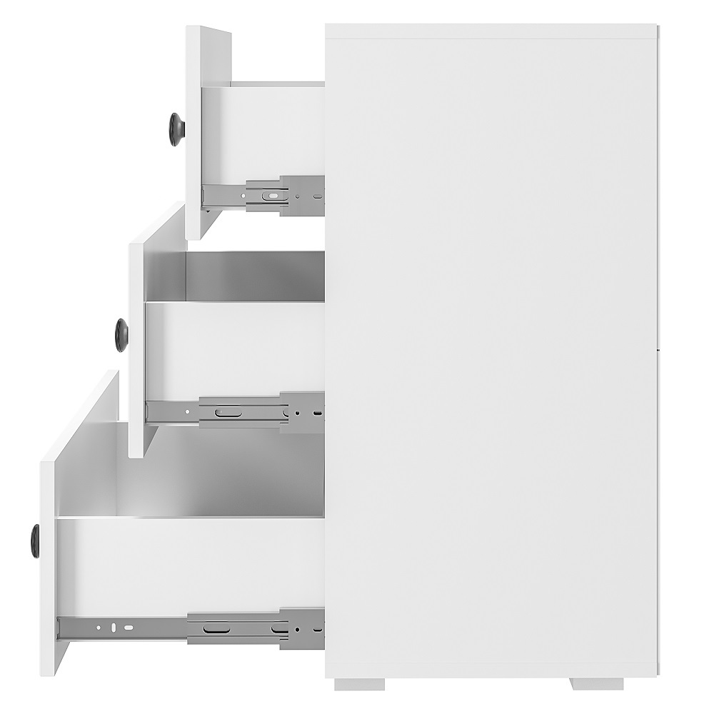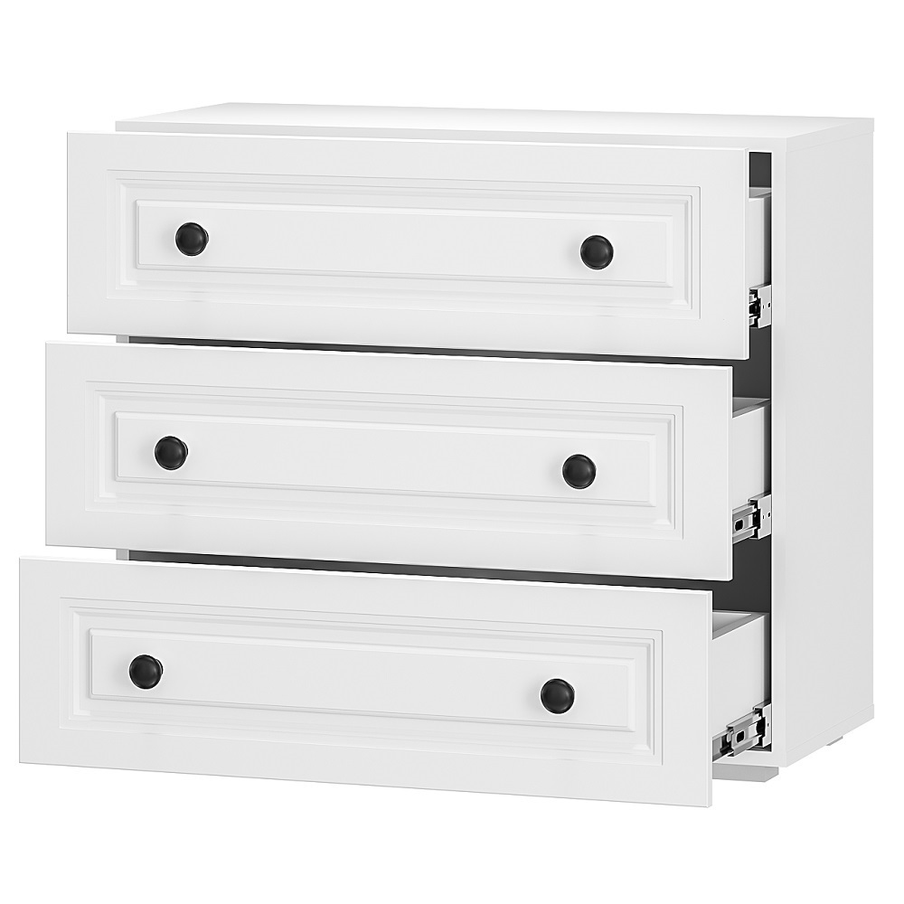 Комод Софт КМ-01 - это сочетание стильного дизайна и безупречной функциональности. Три выдвижных ящика помогут организовать место хранения аксессуаров и белья. Металлические ручки и актуальная фрезеровка фасадов впишутся в современный дизайн интерьера.