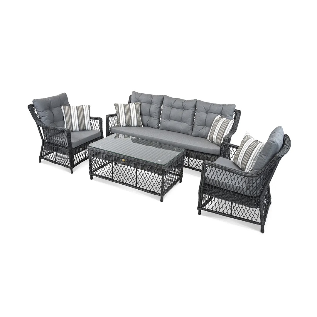 Готовое решение для организации стильной зоны отдыха: диван, два кресла и журнальный стол в едином дизайне коллекции ИМПЕРО. Комплект сочетает элегантные линии, комфортную посадку и долговечные материалы. Лаконичный, но выразительный ансамбль станет центром притяжения в вашем саду, на террасе или в патио