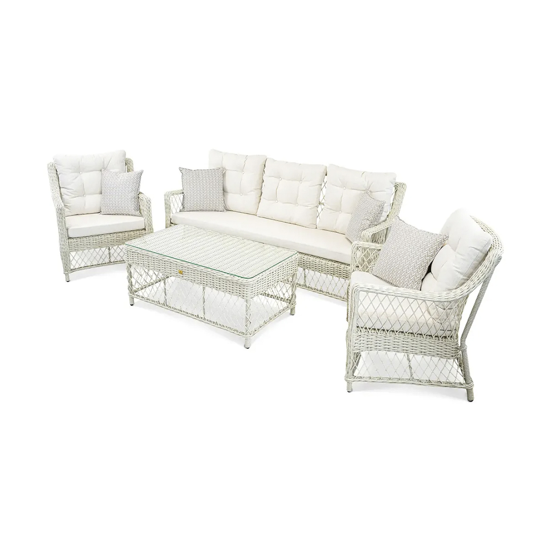 Готовое решение для организации стильной зоны отдыха: диван, два кресла и журнальный стол в едином дизайне коллекции ИМПЕРО. Комплект сочетает элегантные линии, комфортную посадку и долговечные материалы. Лаконичный, но выразительный ансамбль станет центром притяжения в вашем саду, на террасе или в патио