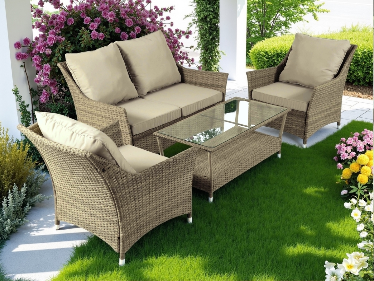 Комплект для отдыха из искусственного ротанга Бергамо «Bergamo» на 4 персоны обеспечит максимальный комфорт и гармоничное пространство. Будь то уютная гостиная, просторная терраса или укромный уголок, комплект мебели из ротанга Бергамо "Bergamo" станет идеальным дополнением для отдыха. Не боится перепадов температур, прямых солнечных лучей, поверхность прочная и долговечная, проста в уходе.