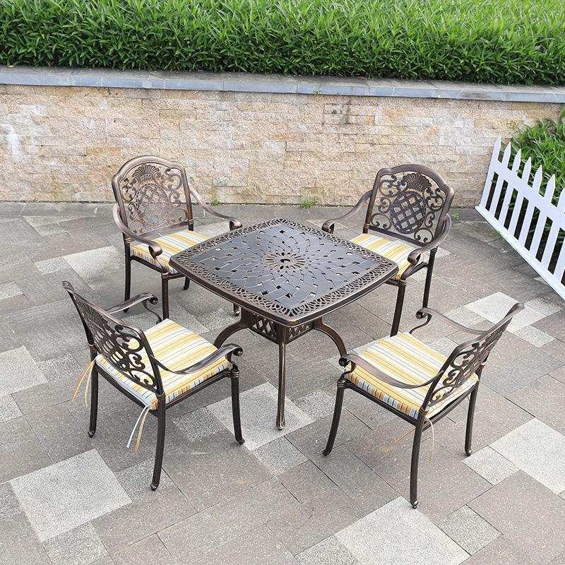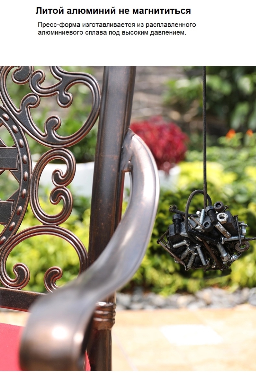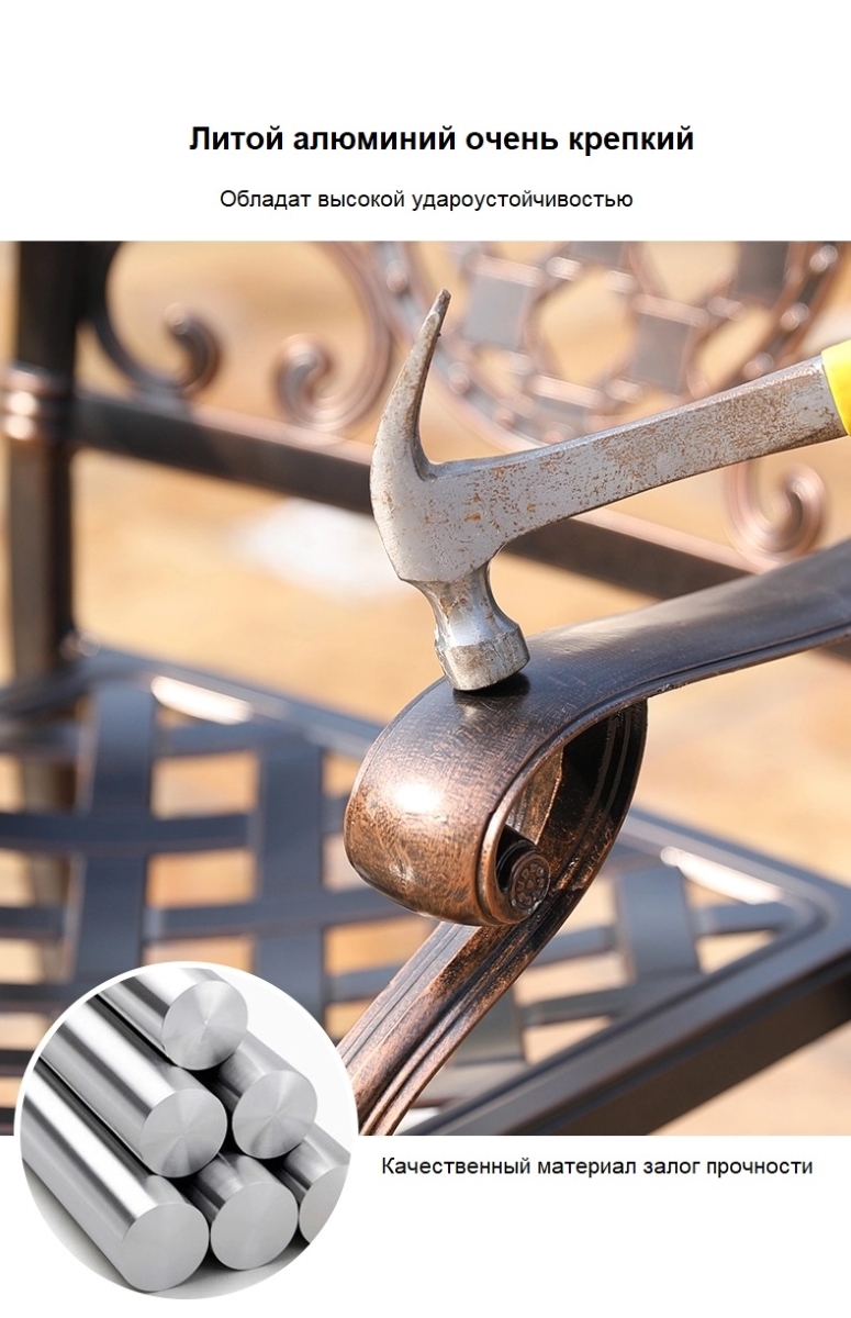Комплект садовой мебели из литого алюминия включает квадратный стол “Адонис” размером 90x90 см и четыре кресла “Герлен”. Прочный и легкий материал обеспечивает долговечность, устойчивость мебели к воздействию окружающей среды, а также простоту перемещения и установки. Современный дизайн делает этот комплект идеальным для создания уютной зоны отдыха на открытом воздухе, например, на террасе, патио, веранде или в саду.