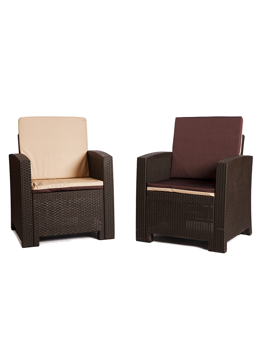 Состав комплекта: кресло-2шт., мягкие подушки бежево-коричневого цвета – 4шт.<br />