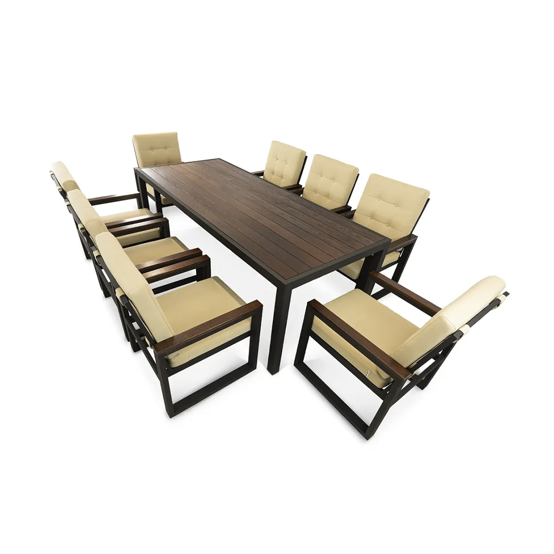 Комплект КВАДРО — пространство для больших праздников. Восемь удобных кресел и стол, объединяющий гостей, создают атмосферу современного гостеприимства. Каждая деталь продумана для максимального комфорта и эстетики.